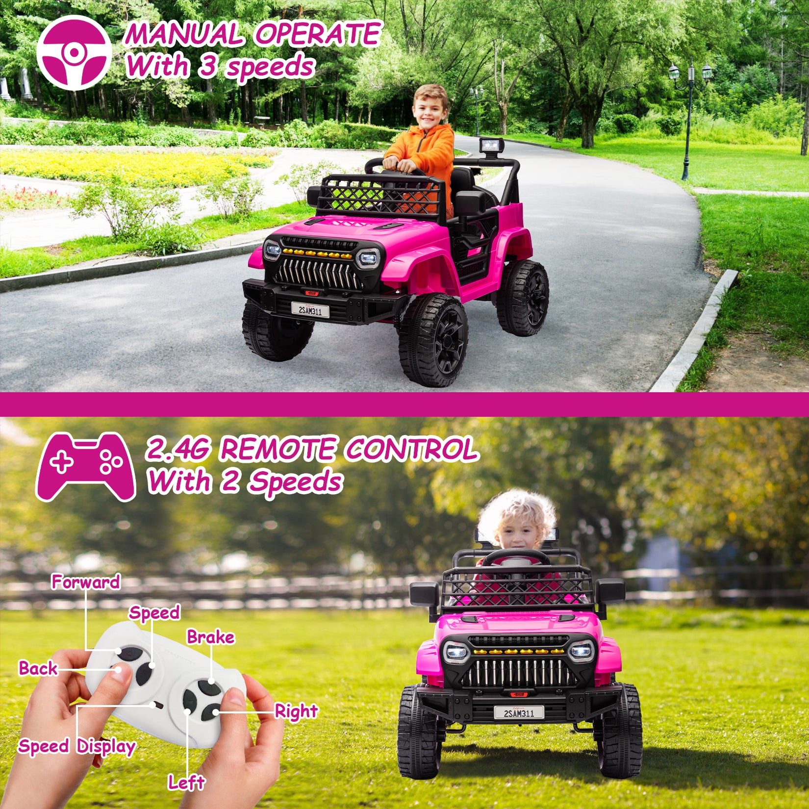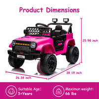 Garvee Ride - P Series: 12V Kids Ride On Truck for Toddles age 3+,with 2.4G Remote Control, Spring Suspension, Battery Display, LED Lights, Music, Battery Powered Ride on Car - Rose Red