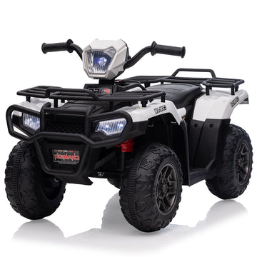 Garvee Ride - P Series: 12V Ride on Quad ATV for Kids, Electric Vehicle for Toddlers, High/Low 2.2mph Safety Speed for Child, Forward/Backward,LED Light, Music,USB for Boys Girls Gift-White