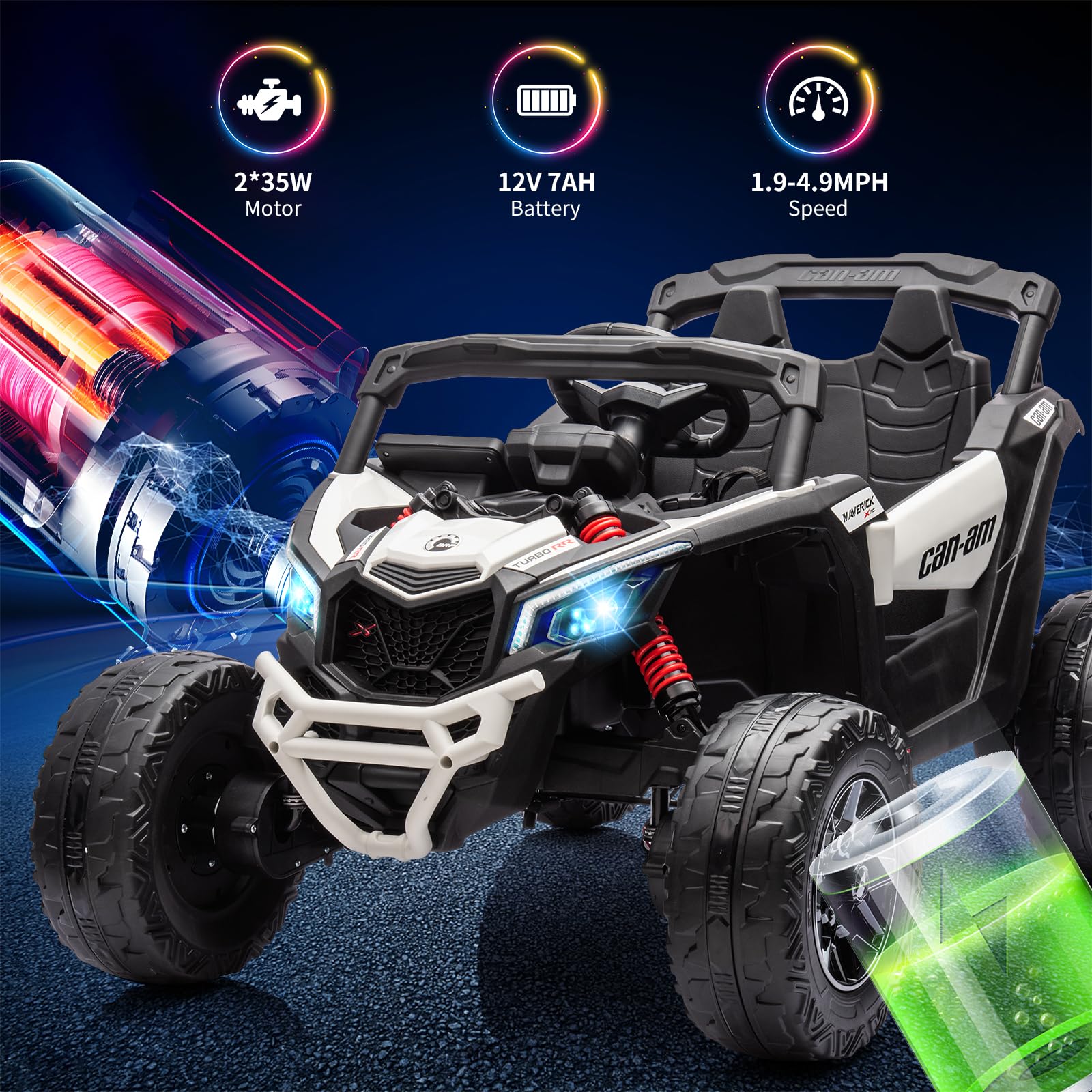Garvee Ride - P Series: 12V Can-Am Ride-On UTV: Remote Control, Large Seat, Music, LED Lights, Spring Suspension, for Boys & Girls - White