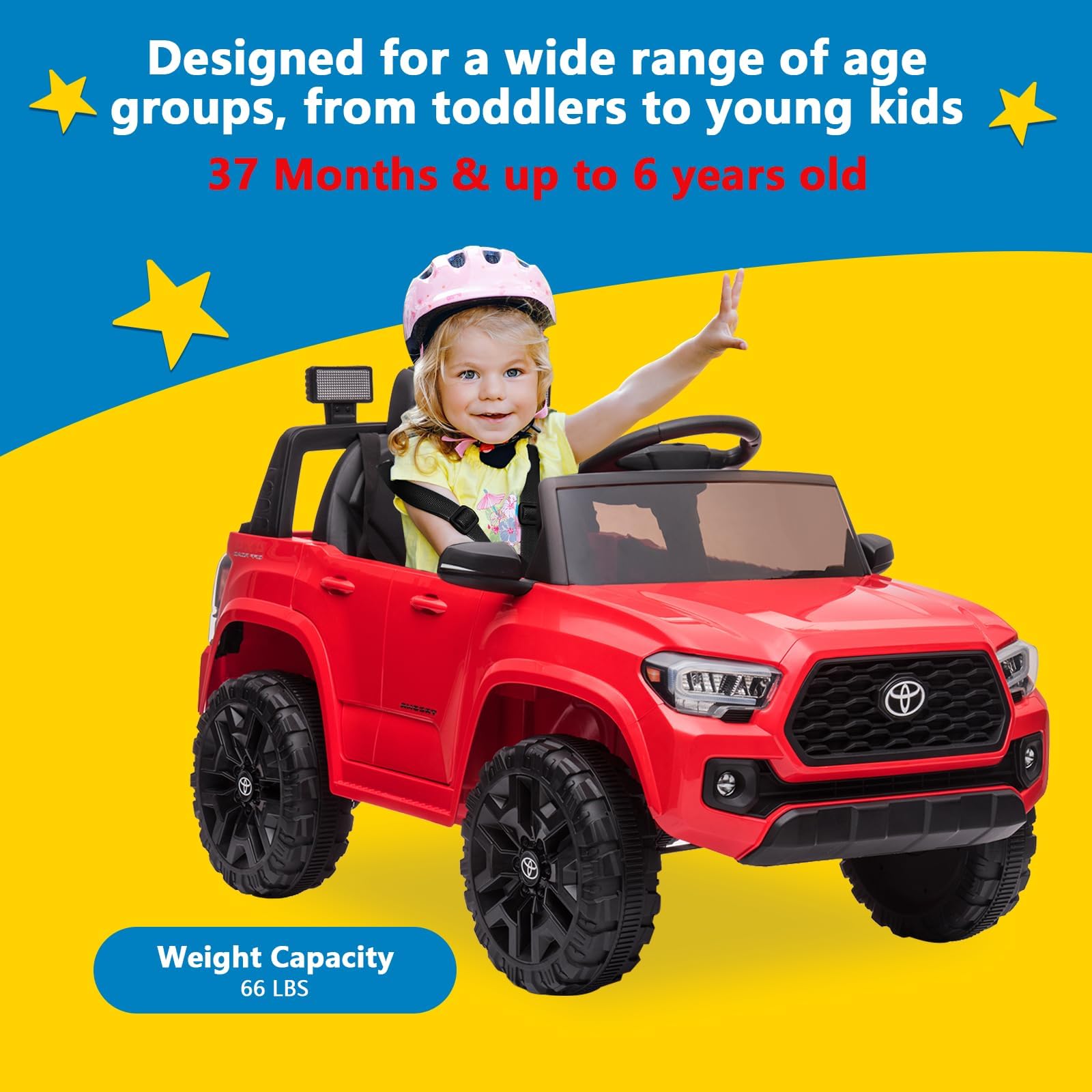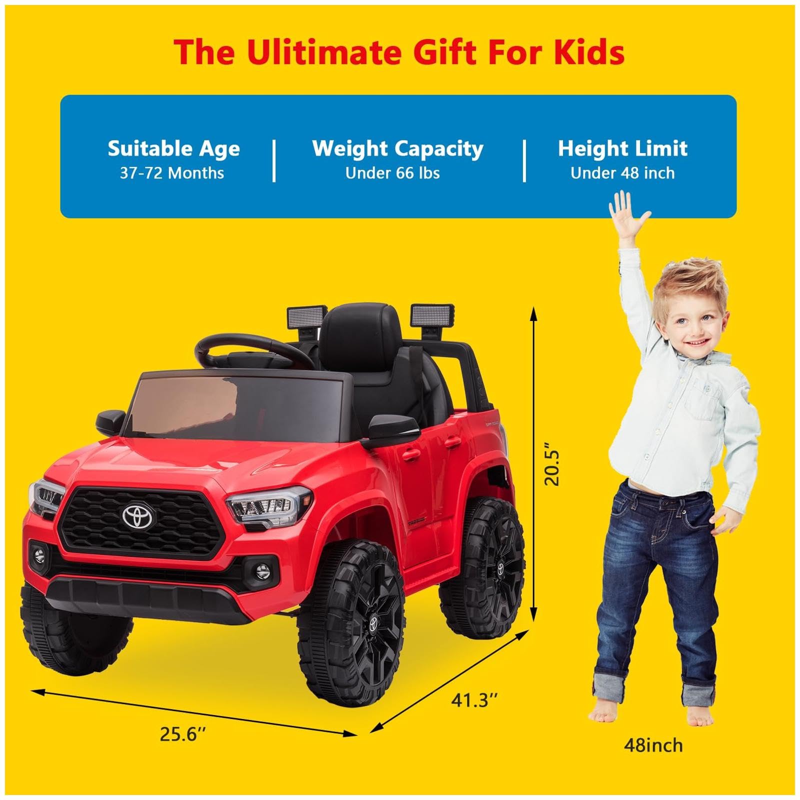 Garvee Ride - P Series: 12V Toyota Tacoma Kids Car, Spring Suspension, with LED Light - Red