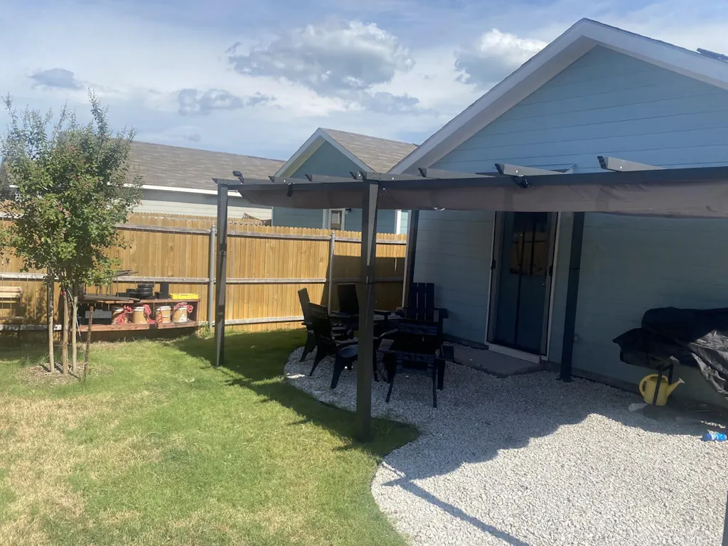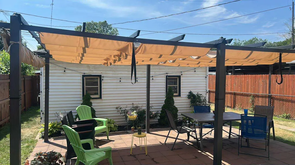 Multi-purpose aluminum pergola offers shade and shelter for gatherings, BBQs, and family meals—enhances your outdoor living space. -