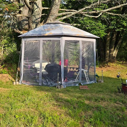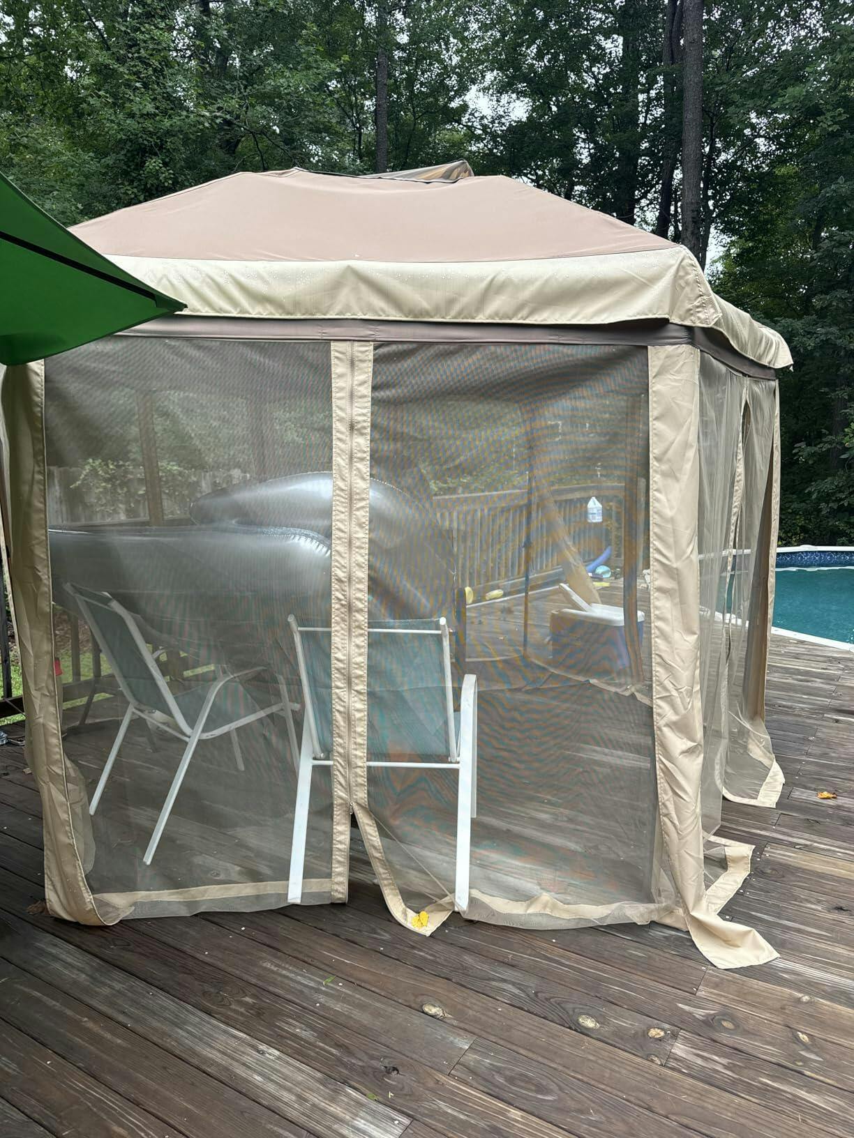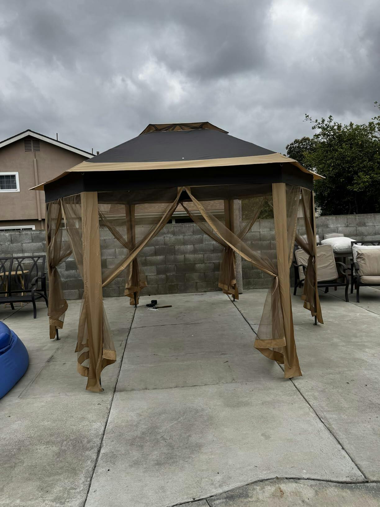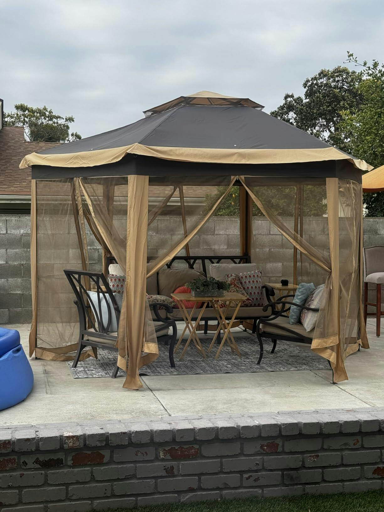 I’m really happy with this 13x13ft pop-up gazebo! It’s the perfect size for our backyard — roomy enough for a table and chairs, and still super easy to set up. The frame feels sturdy, and the canopy gives great shade on hot days. We’ve even taken it to the park a few times, and it’s been perfect for picnics and family gatherings.The mosquito netting is a huge plus. It attaches easily and keeps all the bugs out, so we can relax or eat in peace. The zippers work smoothly, and the nets tie back neatly when we want them open.Setup is quick — one or two people can get it up in minutes. It looks great, too, almost like a permanent patio setup even though it’s easy to move and pack up.Pros:Quick and easy setupSpacious 13x13ft sizeMosquito netting works greatSturdy frame and good fabric qualityEasy to take to parks or outdoor eventsCons:Needs to be staked or weighted down on windy daysOverall, this is a fantastic gazebo for the price. It’s sturdy, stylish, and super convenient — perfect for the backyard, the park, or any outdoor gathering. Highly recommend!