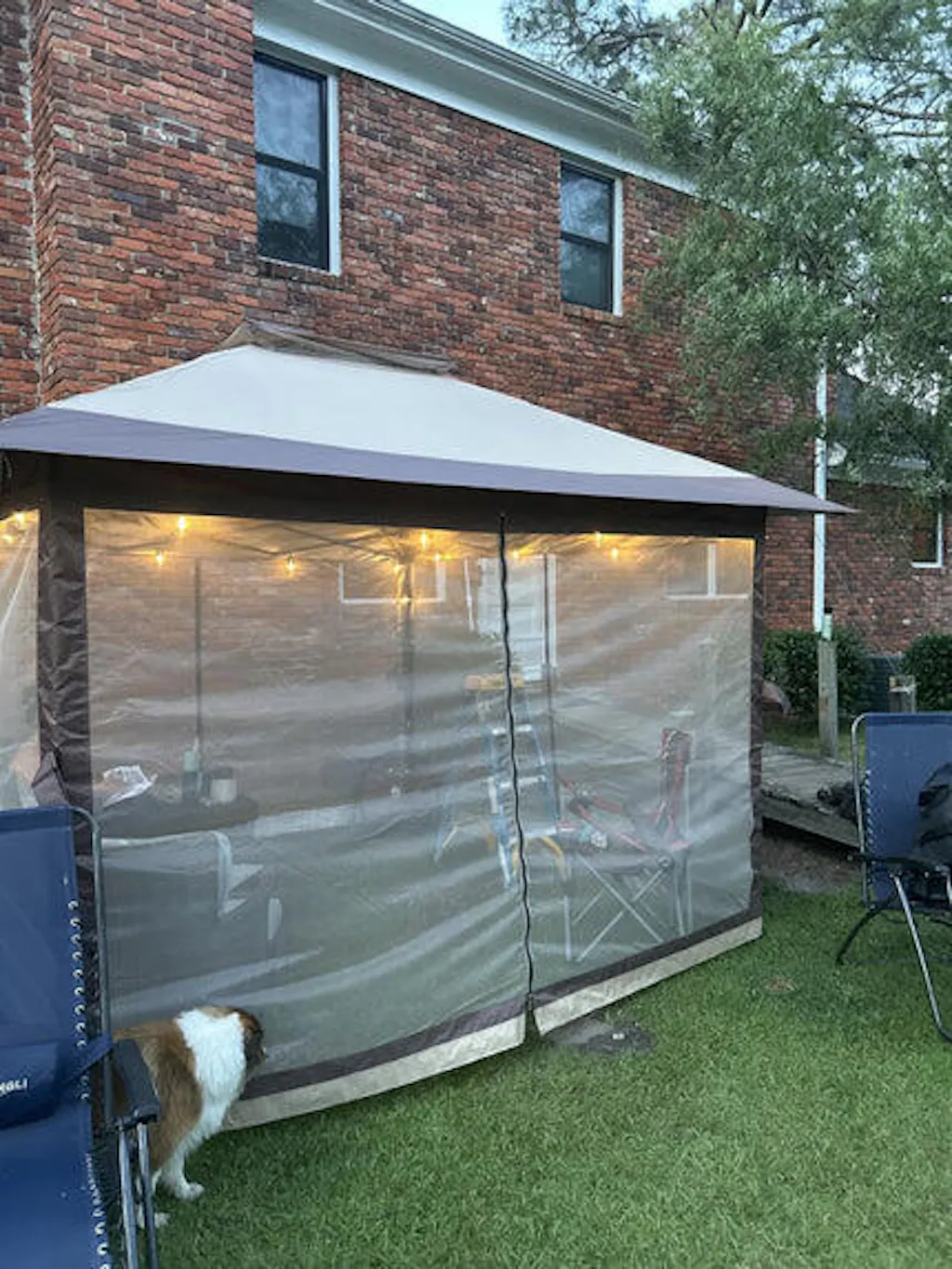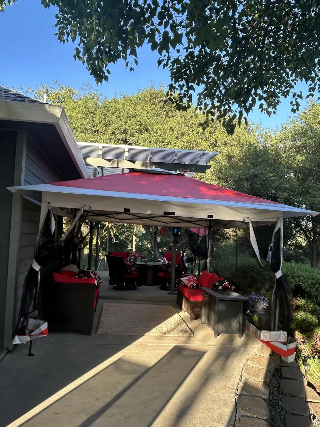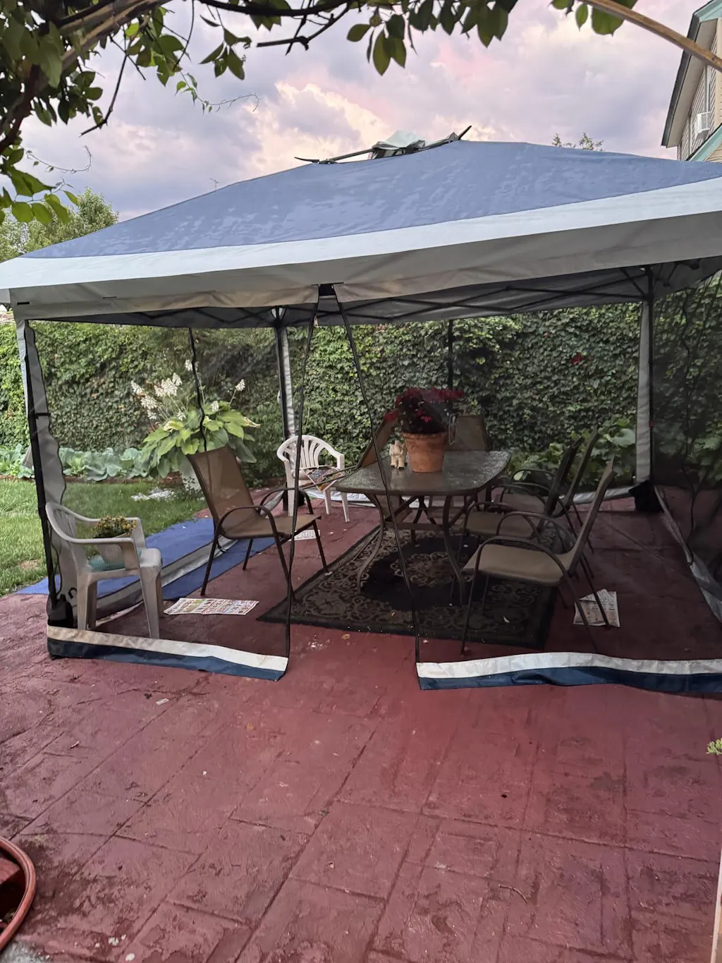 It arrived a day early which was great. I was glad my husband was able to set it up VERY easily, as it was larger than I anticipated (13x13). He usually has a lot of choice words while setting up the patio items I order.It’s a really pretty set up. I haven’t been able to test the effectiveness against mosquitoes yet, as it seems there are some places they can get through. The quality is nice, but not very thick and we will see how it holds up in the very hot summer and the wind in Northern California. All in all, I feel it’s a good value and I’m really happy with this purchase.