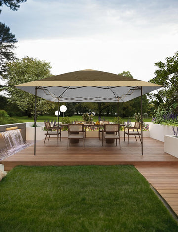 Garvee 13' x 13' Pop-up Gazebo Tent, Outdoor Patio Gazebo Instant Canopy Tent with Double Roof, Khaki & Beige