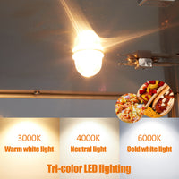 LED lighting with 3 color temperatures showcases your food in the best light.