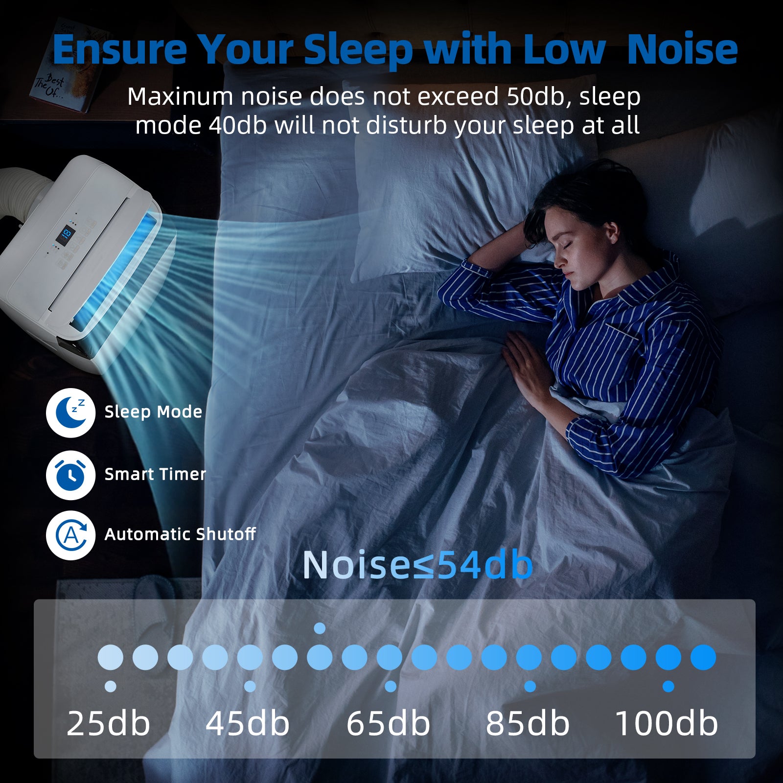 • 4 powerful modes (Cool/Fan/Dry/Sleep), cool range 61° F-89° F.