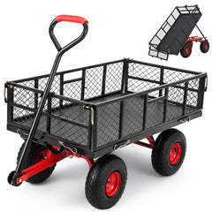 Garvee 1400lbs Steel Garden Cart - Heavy Duty Yard & Garden Wagon with Removable Mesh Sides, 2-in-1 Rotating Handle & 16" All-Terrain Wheels for Farm & Yard
