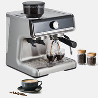 | Included Components | 1* Removable water tank, 1* Detachable grinder cup, 1* Milk frothing pitcher, 1* Removable drip tray, 1* Stainless steel tamper, 1* Portafilter & 1 & 2 cup filter |