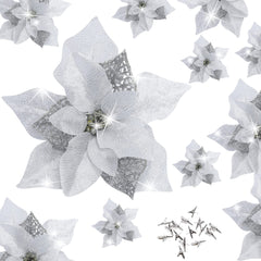 Each set includes 15 beautiful glitter poinsettias with secure clips, making it easy to create stunning holiday displays throughout your home.