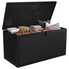 Garvee 150 gal Large Resin Deck Box, Waterproof & Weatherproof Outdoor Storage Box, Lockable Pool Storage Bin with Lid for Porch Patio Garden Backyard, Brown