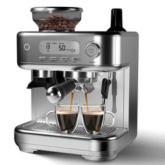 GARVEE 15-Bar Espresso Machine with Built-In Grinder - Professional Coffee and Espresso Maker for Cappuccino and Latte, Semi-Automatic with 77 Oz Removable Water Tank, Silver