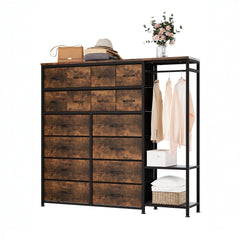 Garvee 16 Drawers Dresser with Clothes Rack, Freestanding Closet Organizer for Hanging Clothes, Tall Fabric Chests with Wardrobe Clothing Rack, 2 Storage Shelves for Bedroom Living Room, Black
