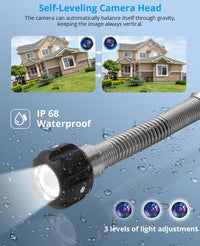 Equipped with adjustable 12 LED lights, this pipe inspection camera provides sufficient brightness for darker environments. Its IP68 waterproof rating makes it suitable for dark areas, wet areas, and more.