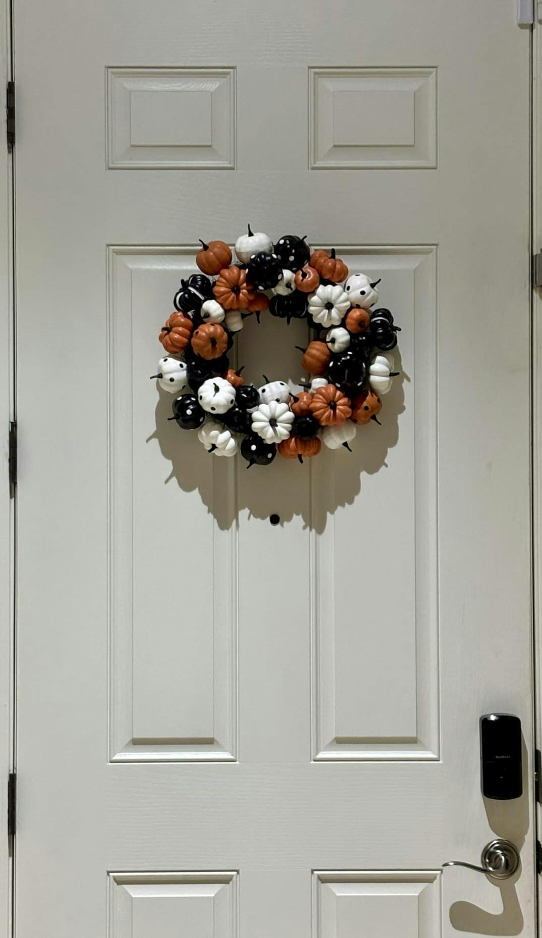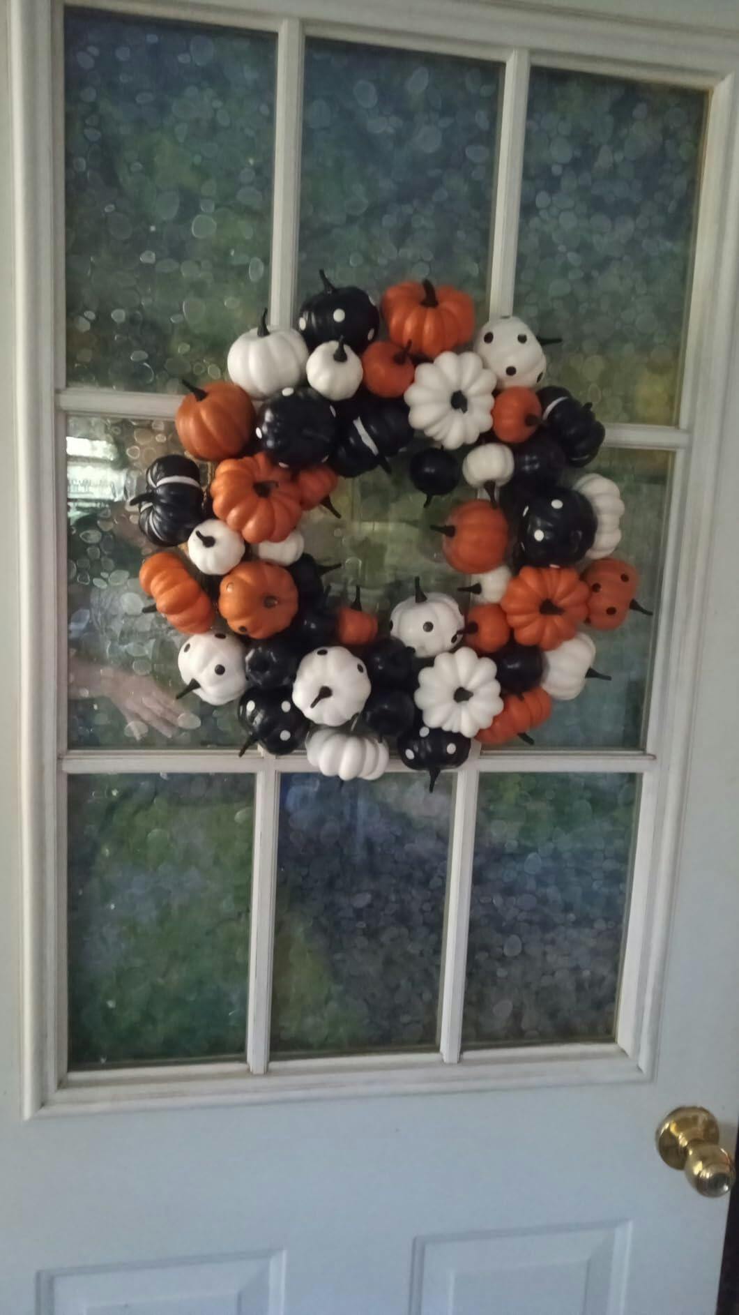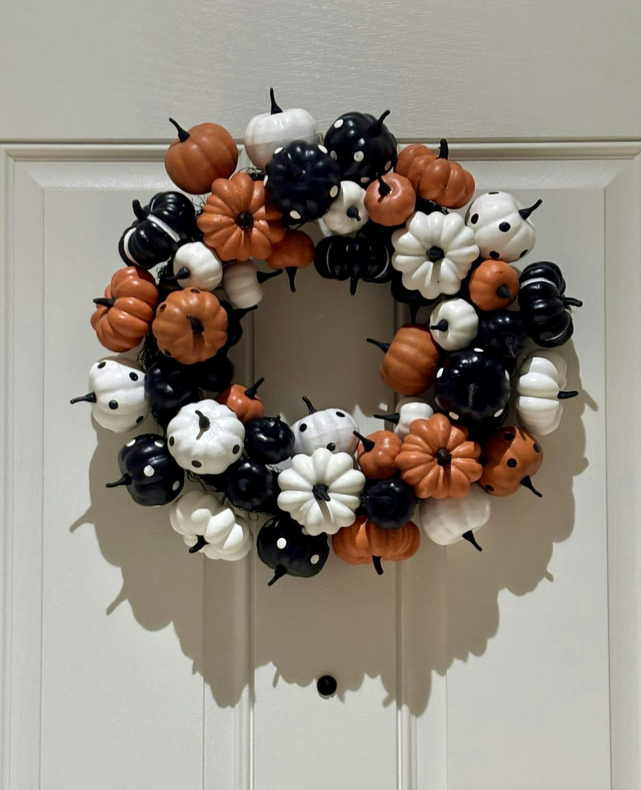 Garvee 18 Inch Halloween Fall Wreath for Front Door, Black Orange White Artificial Pumpkin Wreath for Fall and Halloween Indoor Outdoor Home Party Decor