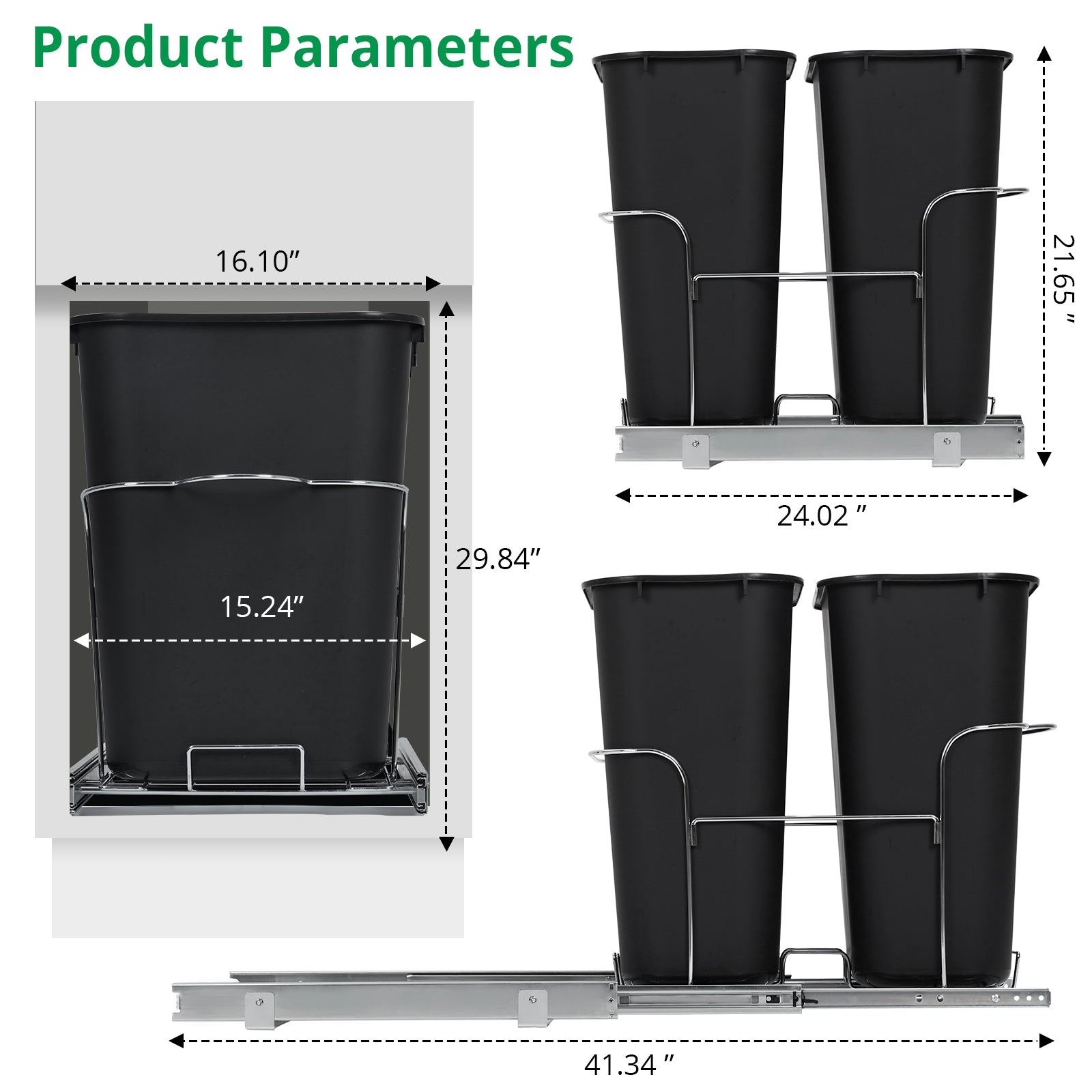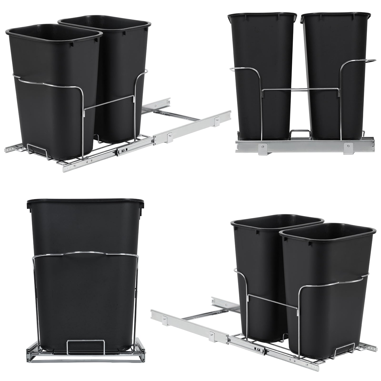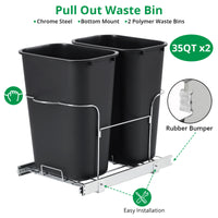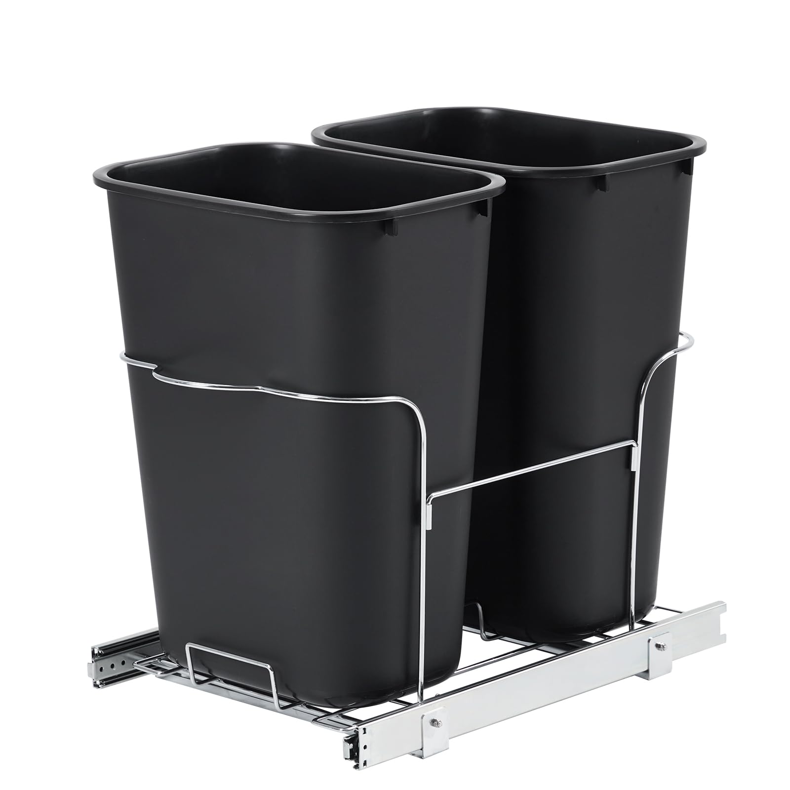 Garvee 2×35QT Garbage Waste Recyling Bin with Full Extension Slides, Space-Saving Design, Eco-Friendly Waste Management, Multi-Purpose Bins, Pullout Trash Can for Under Kitchen Cabinets, Black