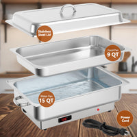 - 【Versatile Applications】With a generous 9 QT capacity, this electric chafing dish buffet set is designed for continuous use over long periods, making it an ideal choice for catering, banquets, restaurants, buffets, or home use. Elevate your dining experience with this versatile electric food warmer.