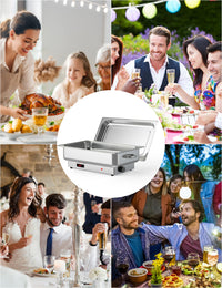 - 【Adjustable Temperature Control】The electric buffet servers and warmers have a digital control panel and temperature display, so you can easily read and adjust the temperature. Great for keeping food at the perfect serving temperature. The stainless steel chafing dish can adjust the temperature from 86°F and 200°F(30°C and 93°C) to keep food warm.