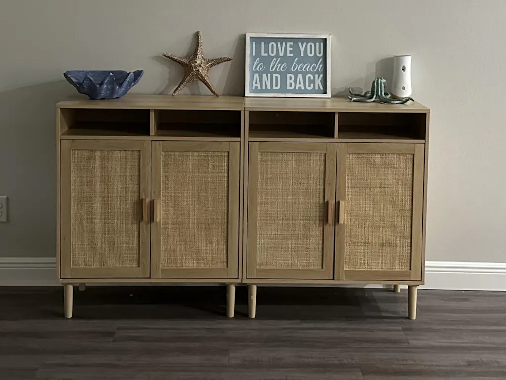 With its ergonomic design, spacious interior, and natural rattan doors, the GARVEE Set of 2 Sideboard Buffet Cabinet combines smart design with endless possibilities for storage and display.