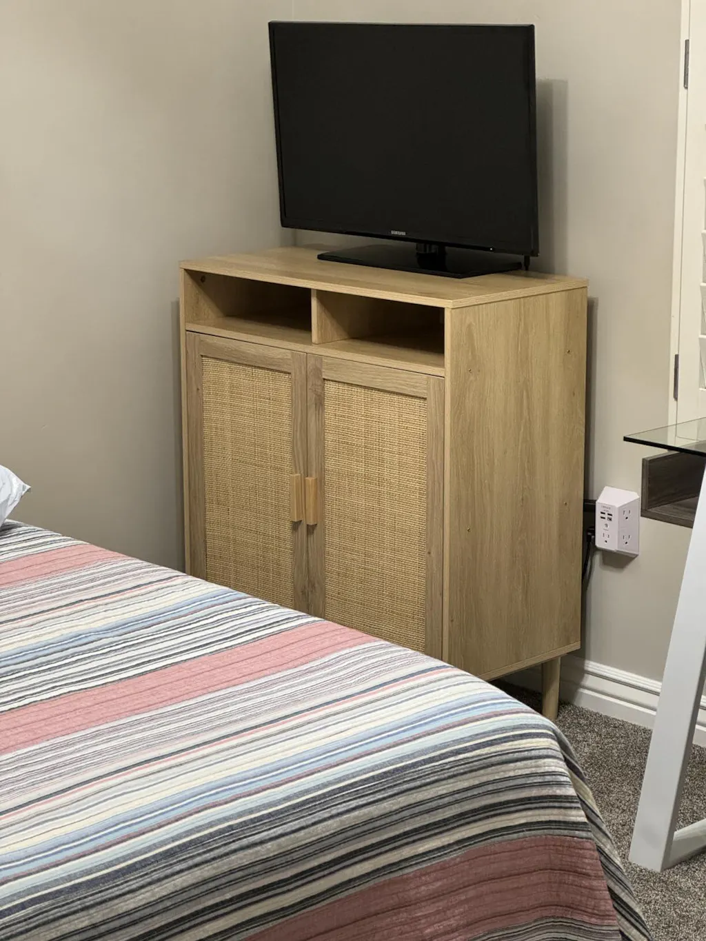 Garvee Set of 2 Sideboard Buffet Cabinet with Rattan Doors, Solid Wood Feet, Anti-Tip Kit, P2 Particleboard, for Kitchen, Dining Room, Living Room