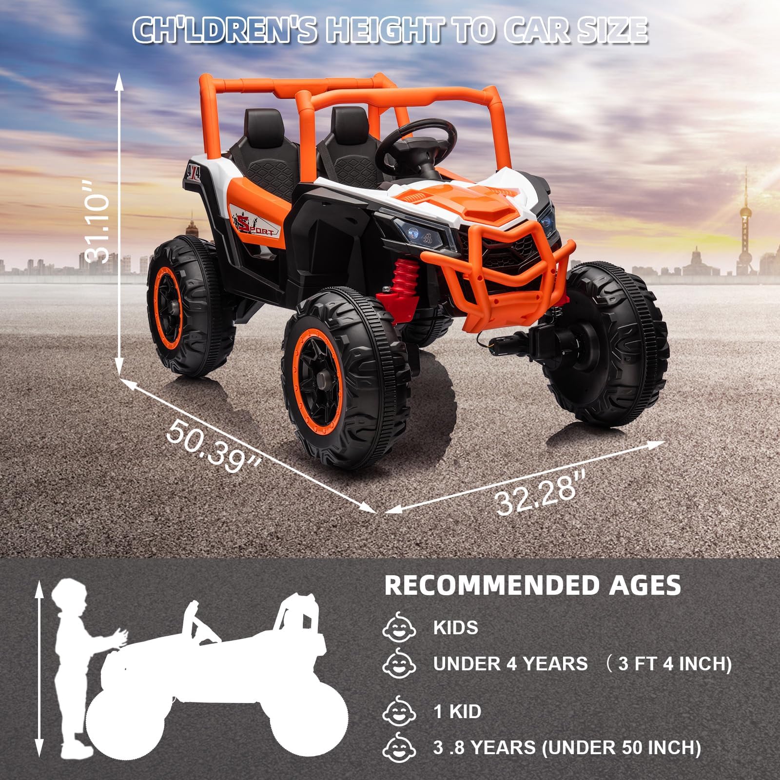 Garvee Ride - P Series: 2 Seater Ride on Car,12V Battery Powered Off-Road UTV Toy,Electric Car with Remote Control,Metal Frame,EVA Wheels,LED,Spring Suspension for 3-8 Boys&Girls - Orange