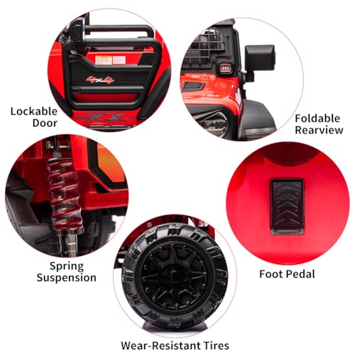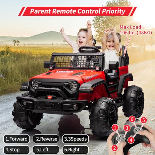 Garvee Ride - P Series: 2 Seaters Kids Ride On Truck with Remote Control,20“ Large Seat Ride On Car for Toddlers, 24V 9AH Electric Vehicle Car with Led Light,Large Storage Space, Bottle Holder,Music, Horn for 3-8 Years,Red