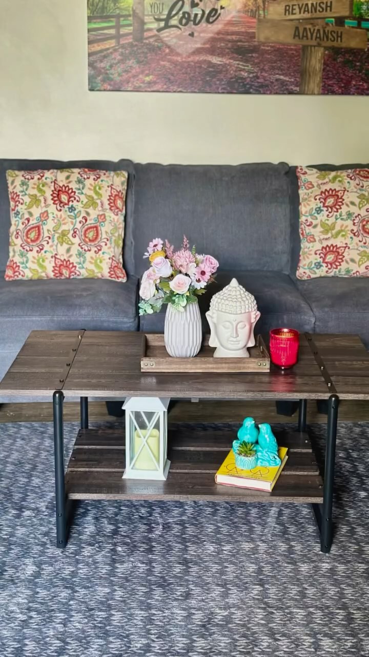Garvee 2-Tier Farmhouse 41'' Large Gray Wood Coffee Table with Storage Shelf -Modern Rustic Metal Rectangle Center Living Room Coffee Table Accent Furniture for Home Office,Easy Assembly