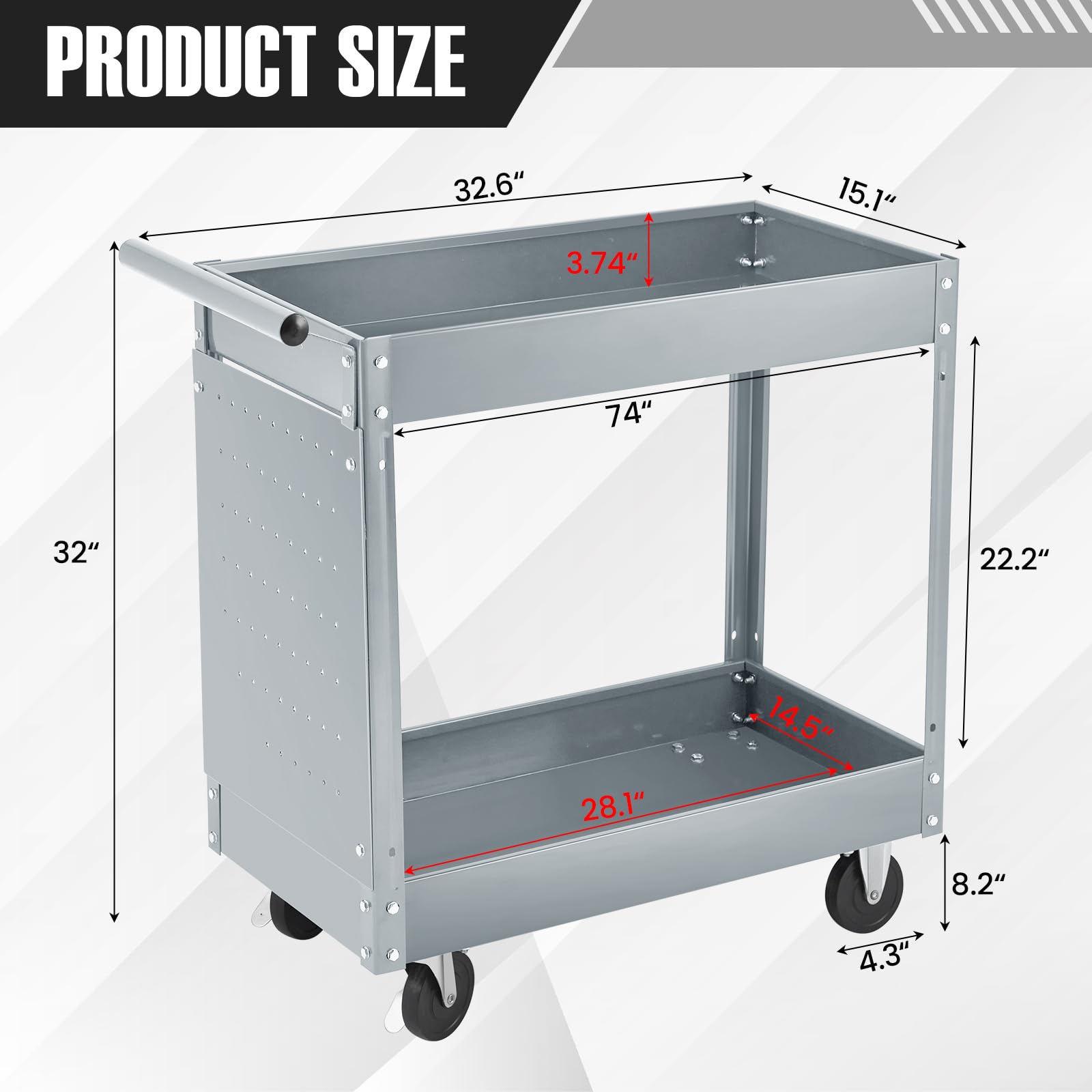 - Tool Cart on Wheels Specifications:Service cart 's size :29.14 " L x 15.16 " W x 32.09 " H,2 tier shelves’ size:29.14 ” L x 15.16 " W x 3.74 ” H