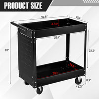 - Tool Cart on Wheels Specifications:Service cart 's size :29.14 " L x 15.16 " W x 32.09 " H,2 tier shelves’ size:29.14 ” L x 15.16 " W x 3.74 ” H