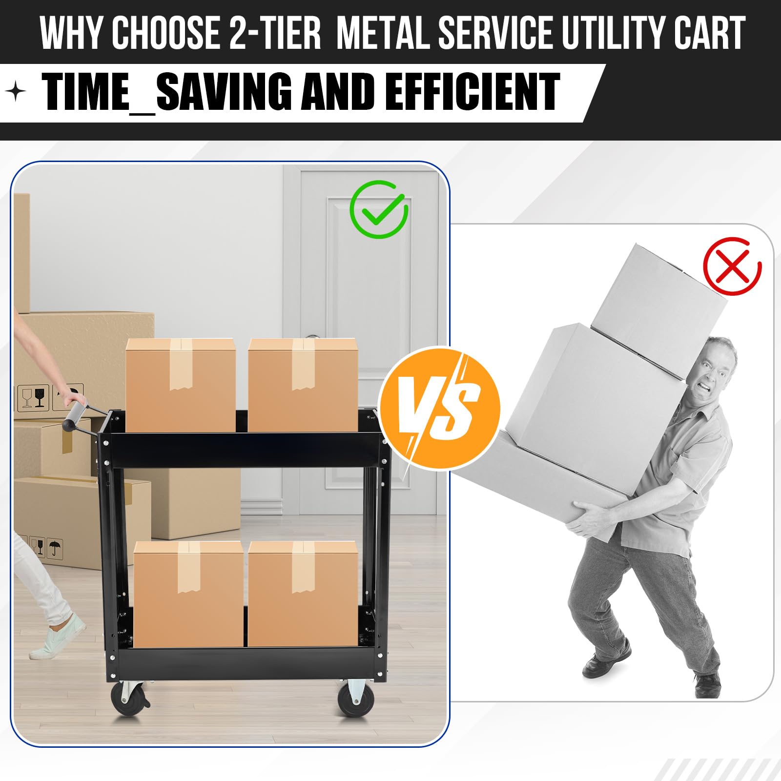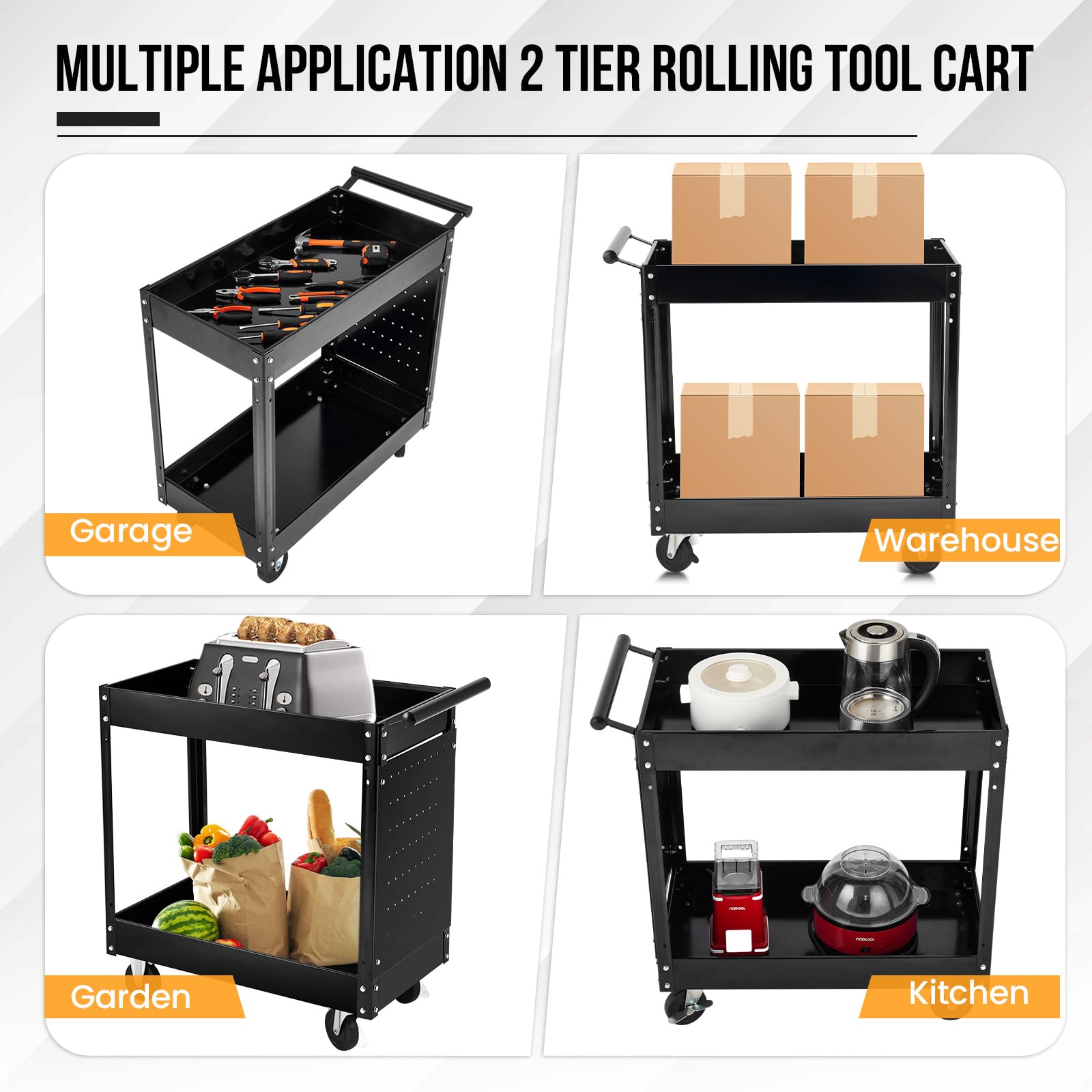 Garvee 2 Tier Rolling Tool Cart,330 Lbs Metal Heavy Duty Utility Cart On Wheels,2 Shelf Steel Utility Cart, Tool Storage Organizer for Mechanic, Garage, Workshop, Warehouse & Repair Shop