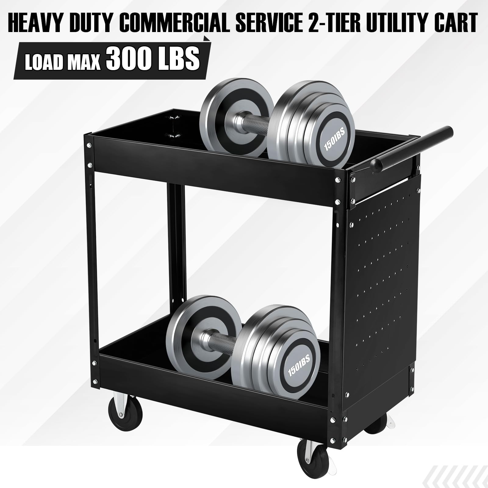 - Sturdy 2-Tier Design: The 2 tier rolling cart features 2 spacious shelves, providing ample space for all your tools, equipment, and supplies. Each shelf features a deep tub style to help store items safely inside.