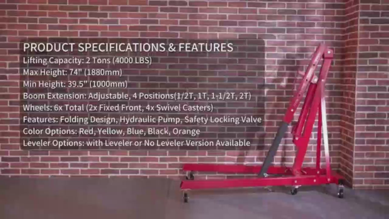 - Lift Heavy Engines: Our 2-ton hydraulic hoist gives you the power to safely lift and move engines, transmissions, and other massive items (up to 4400 lbs) by yourself. Take control of your automotive repairs and heavy lifting projects with confidence.