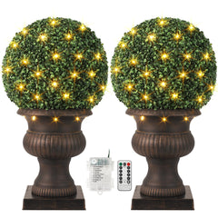 Garvee 20” Artificial Plant Topiary Ball, Pre-Lit Artificial Topiary Plant with 50 Lights, Timer and Remote Control, Artificial Outdoor Porch Trees with Sturdy Pot for Outdoor Indoor, 2 pcs