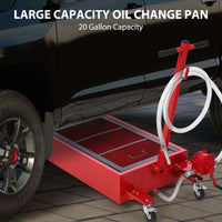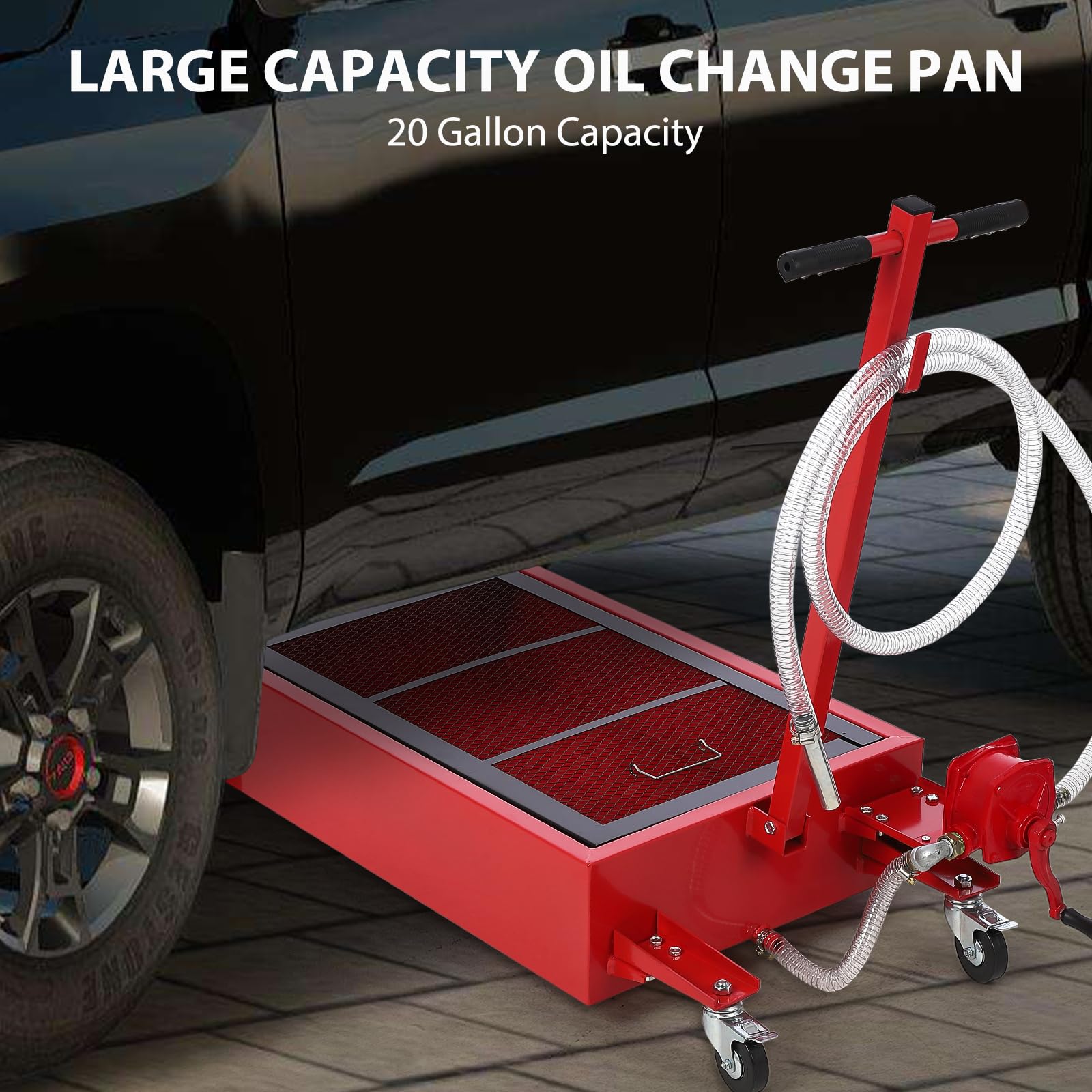Garvee 20 Gal Hand Pump Oil Pan with 7.5 Ft Hose, Low Profile & T Folding Handle Oil Drain Cart for Truck Cars SUVs