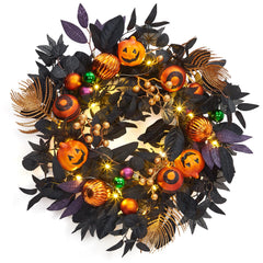 Garvee Halloween Wreath for Front Door, 20 Inch Light Up Pumpkin Wreaths with 20 LED Lights Black Branch Maple Leaves, Prelit Halloween Decorations for Indoor Outdoor Window Wall Decor