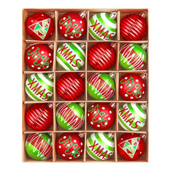 - Christmas ornaments in a 20-pack set for ample decorating options
