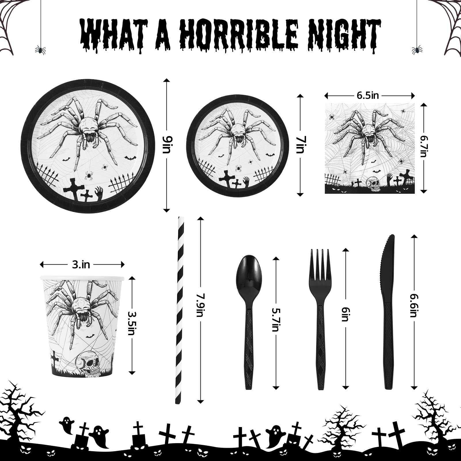 Garvee 215 Pcs Halloween Plates and Napkins Set Serve 25, Halloween Spider Skeleton Disposable Tableware Set, Halloween Decorations Includes Plates, Cups, Napkins, Halloween Tableware