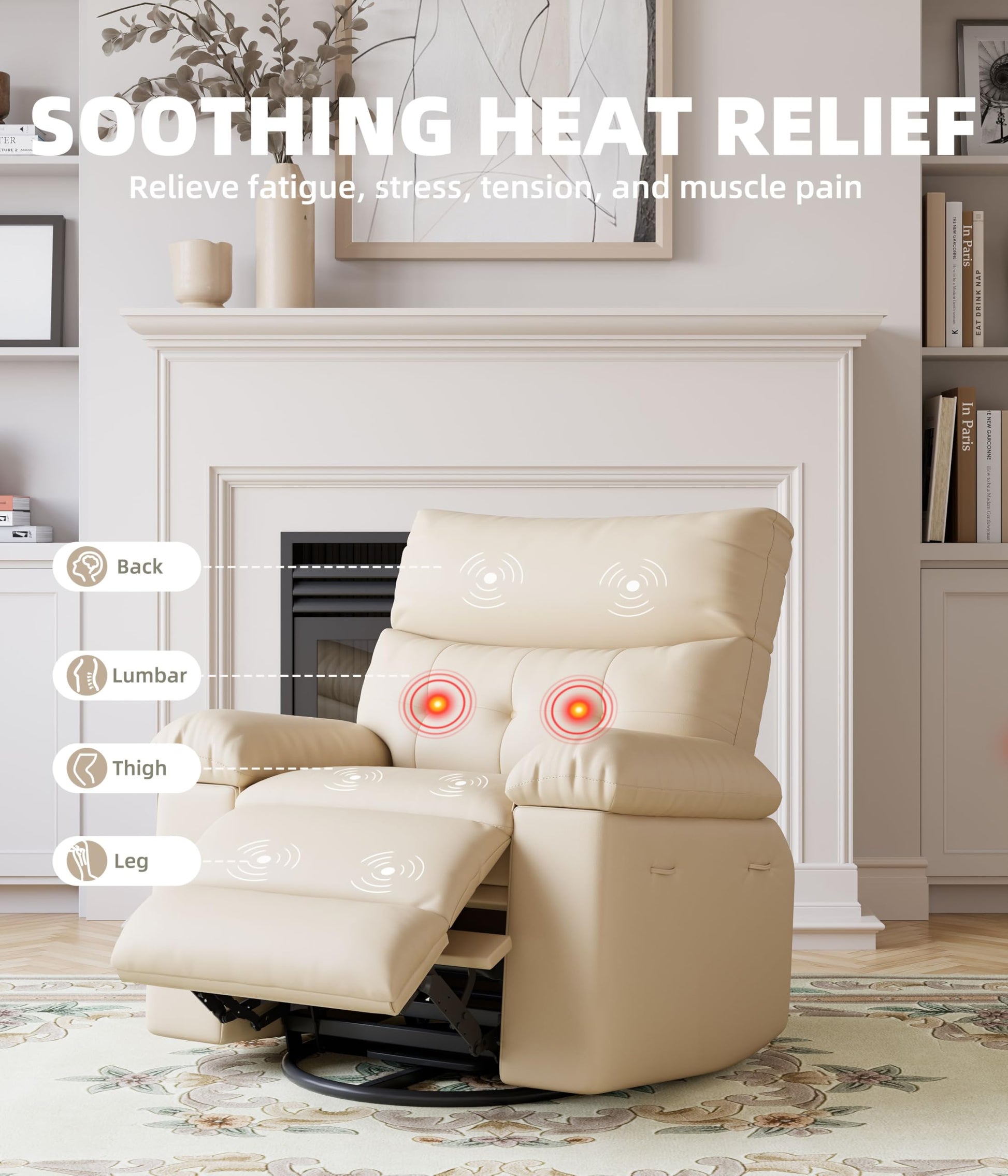 - [Versatile Use] Equipped with heating and vibration functions to relieve fatigue during prolonged sitting; 270° swiveling and 30° rocking to customizable comfort; Ideal for watching TV, gaming, caring for kids, or giving as a thoughtful gift