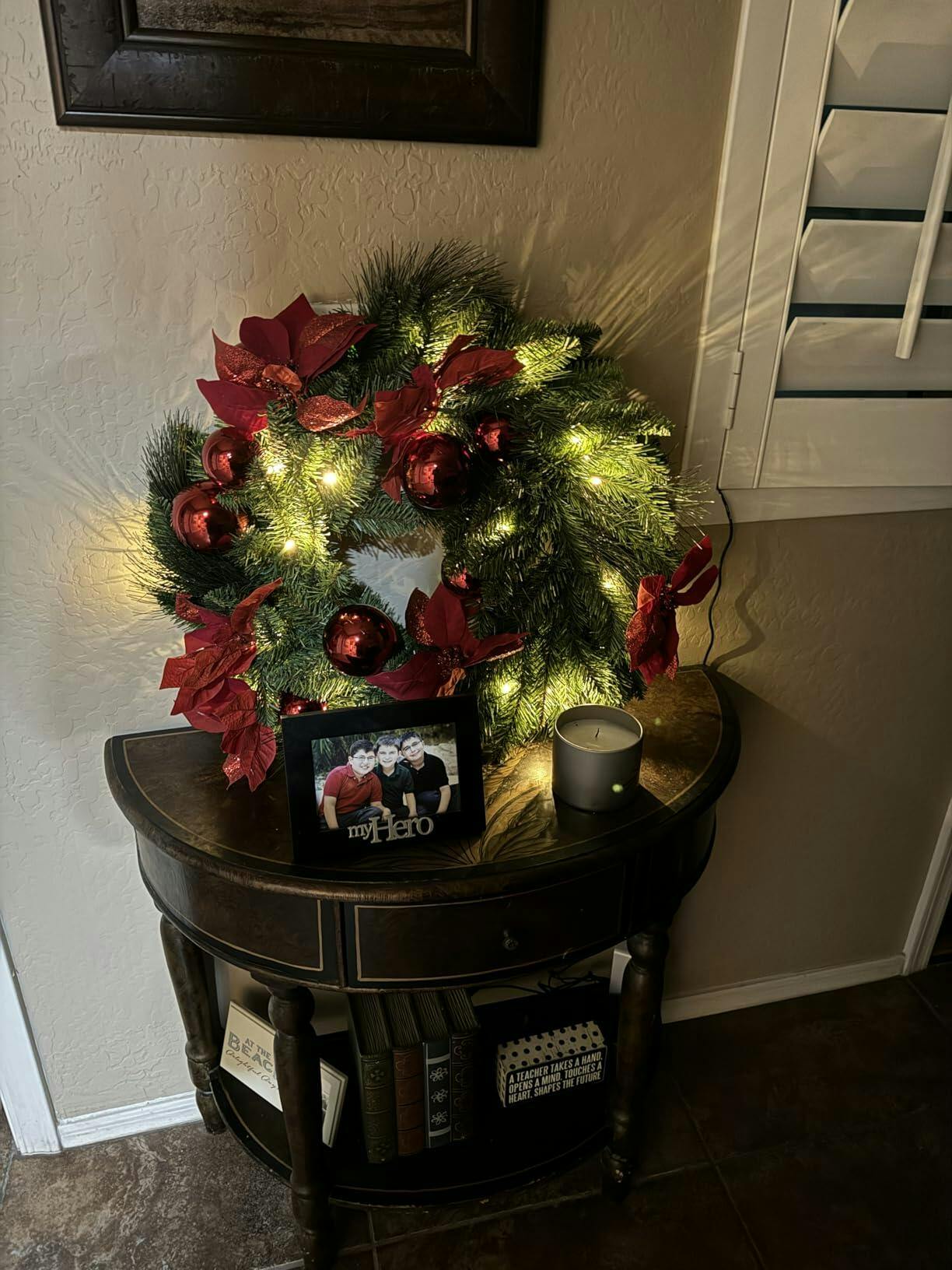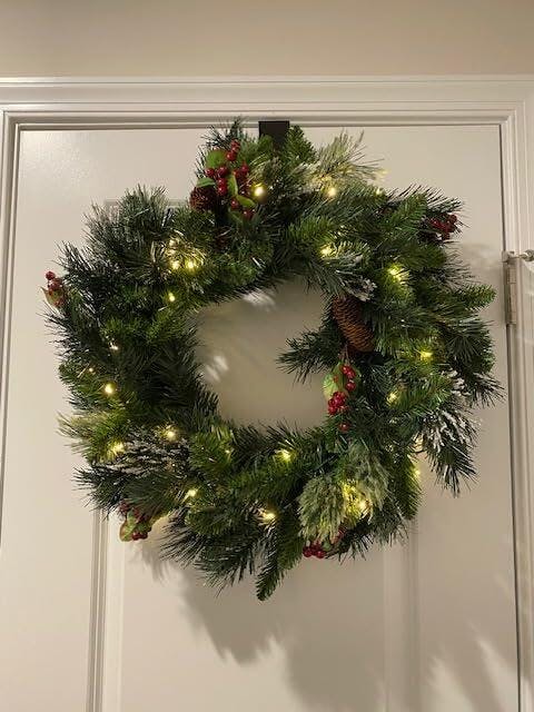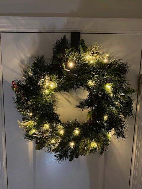 Very nice Christmas wreath. It is a great gift idea or can be used for yourself. It has a good battery life and is a nice size for door or inside use.