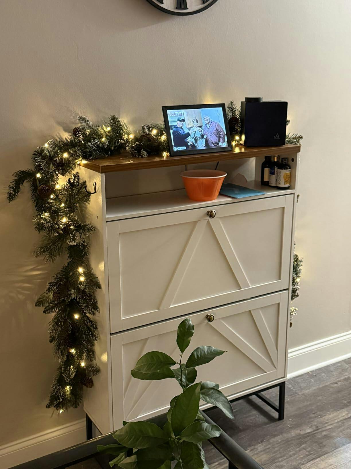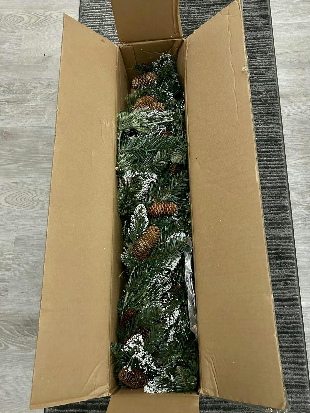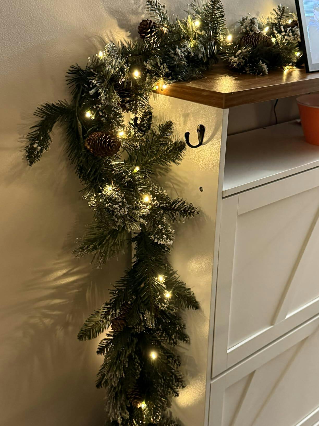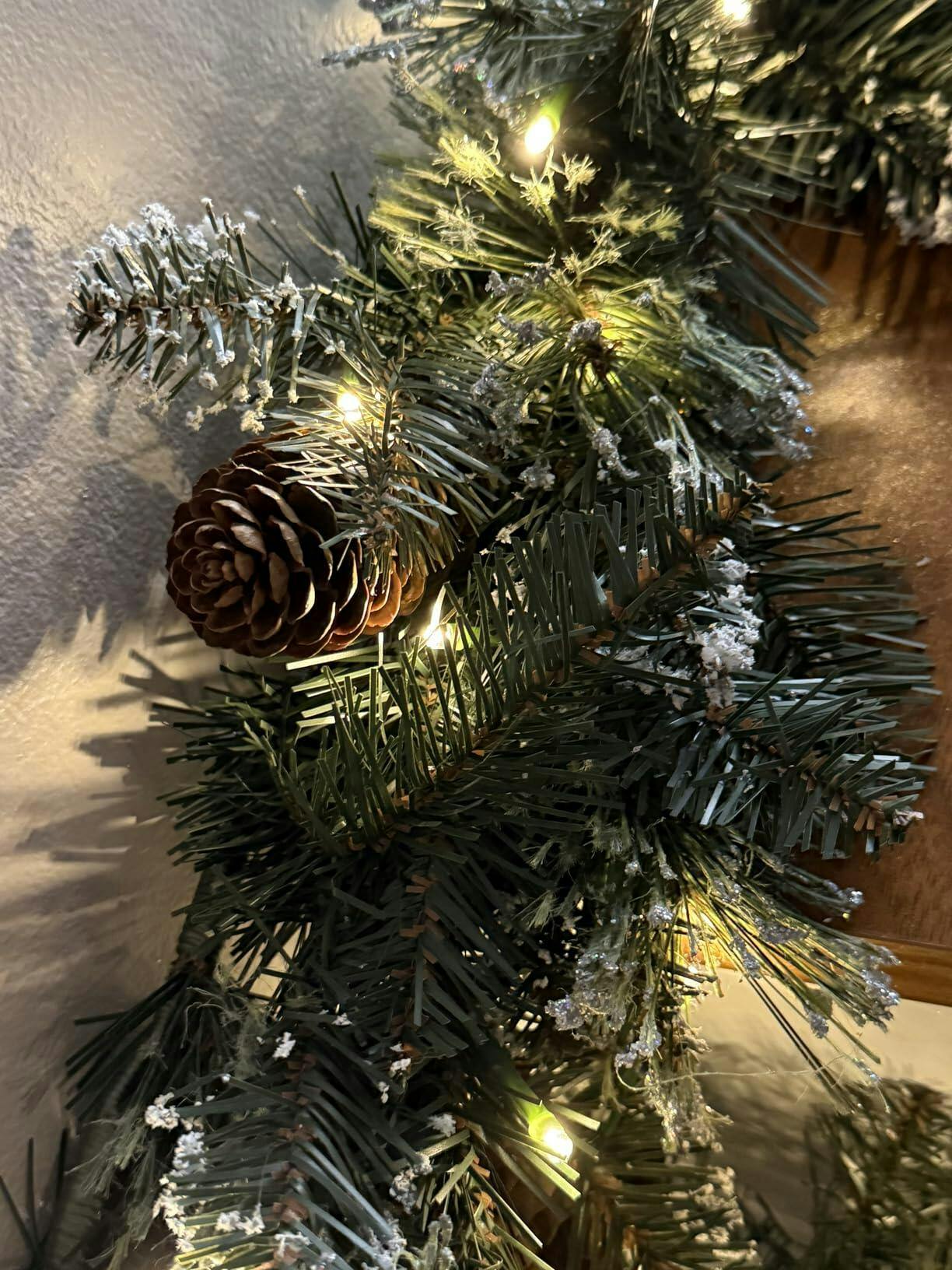 Unpacking this was actually a bit relaxing, I enjoyed unfolding the branches one by one and making them look more natural.At first, I planned to hang it over my blind rod, but it interfered with the blinds. Instead, I placed it over our indoor doorway, and it fits perfectly! I also like that it doesn’t hang all the way down, keeping it out of reach from my toddlers.I actually really like it, it has 9 light settings and runs on batteries, which saves you from dealing with extra cables during this lighting-filled holiday season.Note: When I opened it, there were quite a few flakes and glitter that came off, but that’s understandable since the pines are real and that’s pretty common.