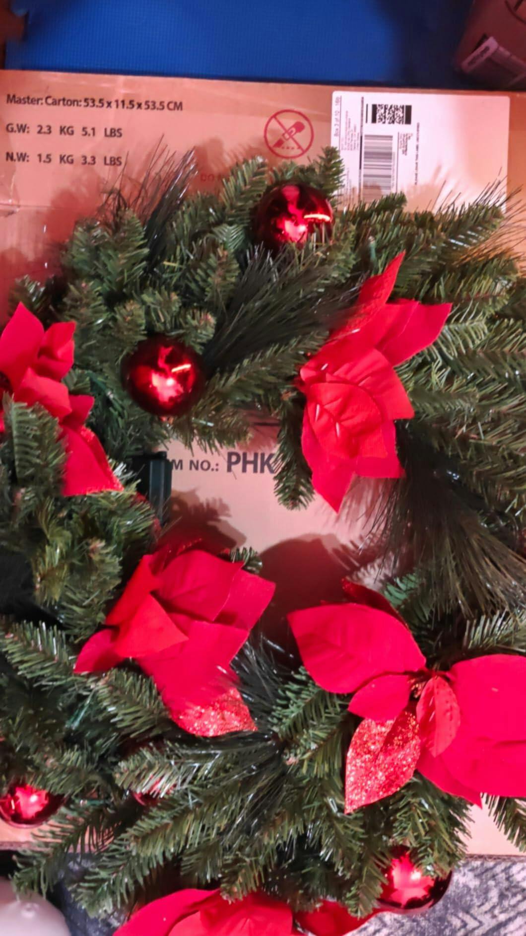 This wreath is simply delightful. From the moment I took it out of its packaging, I was impressed by its lush fullness and the vibrant mix of classic pine needles, cheerful red accents, and subtle cypress leaves. It genuinely embodies that traditional Christmas spirit without looking overdone. It truly enhances the holiday atmosphere the moment it's hung, making a fantastic statement on my front door and welcoming everyone with a warm, festive hug.The integrated lighting is a real game changer. The warm white LEDs cast such a soft, inviting glow, especially as dusk settles. It eliminates the need for stringing separate lights, which is always a hassle, and the battery operation means I can place it anywhere without worrying about outlets or unsightly cords. It really creates a magical ambiance and makes the whole front of the house feel so much more inviting. The ease of setting it up was a pleasant surprise; just a quick fluff and it was ready to shine.I've had this decoration up for a while now, through various weather conditions, and it looks just as brilliant as the day I first put it out. The materials feel substantial and hold their color wonderfully, resisting fading or looking worn. It's clear this piece is designed to be enjoyed for many seasons to come, year after year becoming a cherished part of our holiday tradition. For anyone looking for a beautiful, hassle-free way to adorn their home for winter, this is an absolutely superb choice.