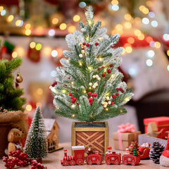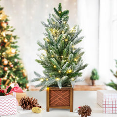 Garvee 24" Mini Christmas Tree LED Lights Frosted Tips Wooden Base Battery Operated Tabletop Decor Home Office Gift