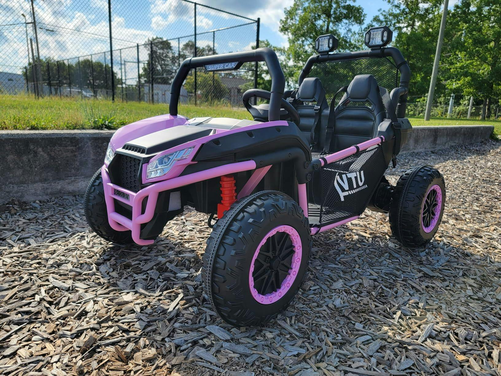 - Real 2 Seater UTV:This XXXL UTV is equipped with a 20-inch wide seat. It is a true two-seater electric vehicle for children. Both seats are equipped with seat belts to ensure safety. It is wide enough for your two children to drive and play.