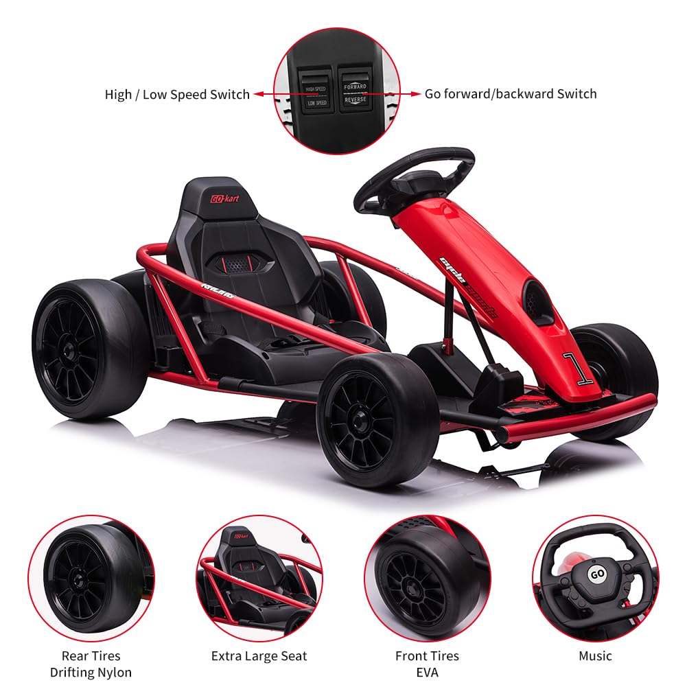 Garvee Ride G Series 24V Go Kart for Kids 8-12, 300W*2 Motors, 9Ah Battery, 8MPH Speed, Music, Horn, 175lbs Max Load - Red
