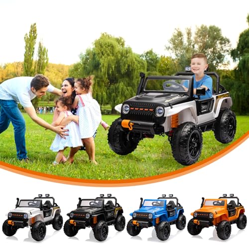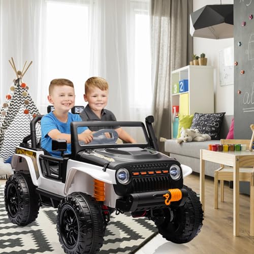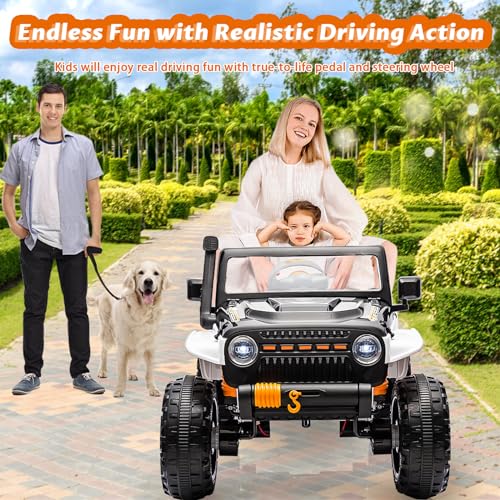 Garvee Ride - P Series: 24V 2 Seater Ride On Truck Car For Kid age 3 - 8 years, w/Remote Control, 4-Wheeler Suspension, 4x55W Powerful Engine, 4WD Battery Powered, LED Lights, Soft Braking - Black and White Mix