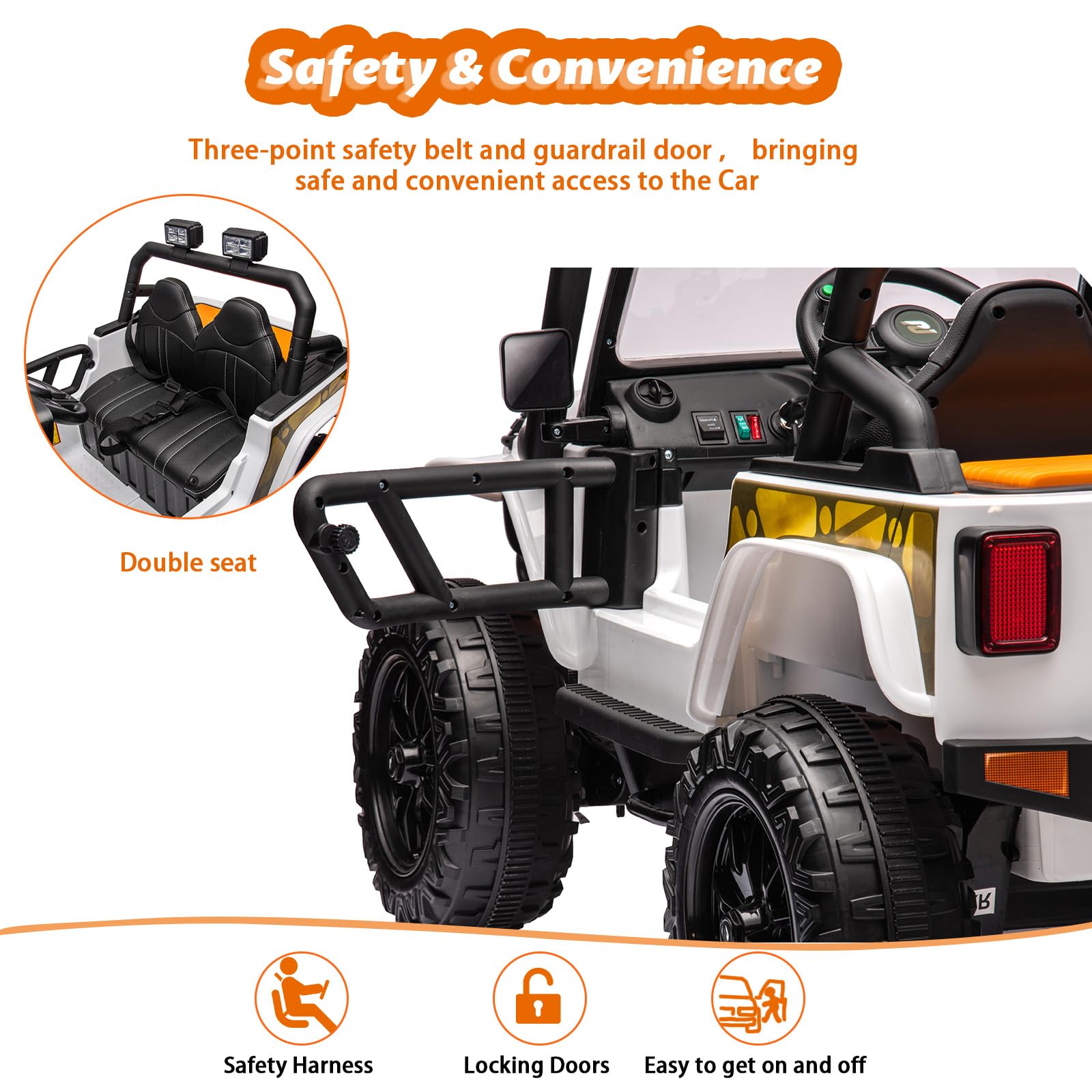 - Adjustable seat belts and safety door locks