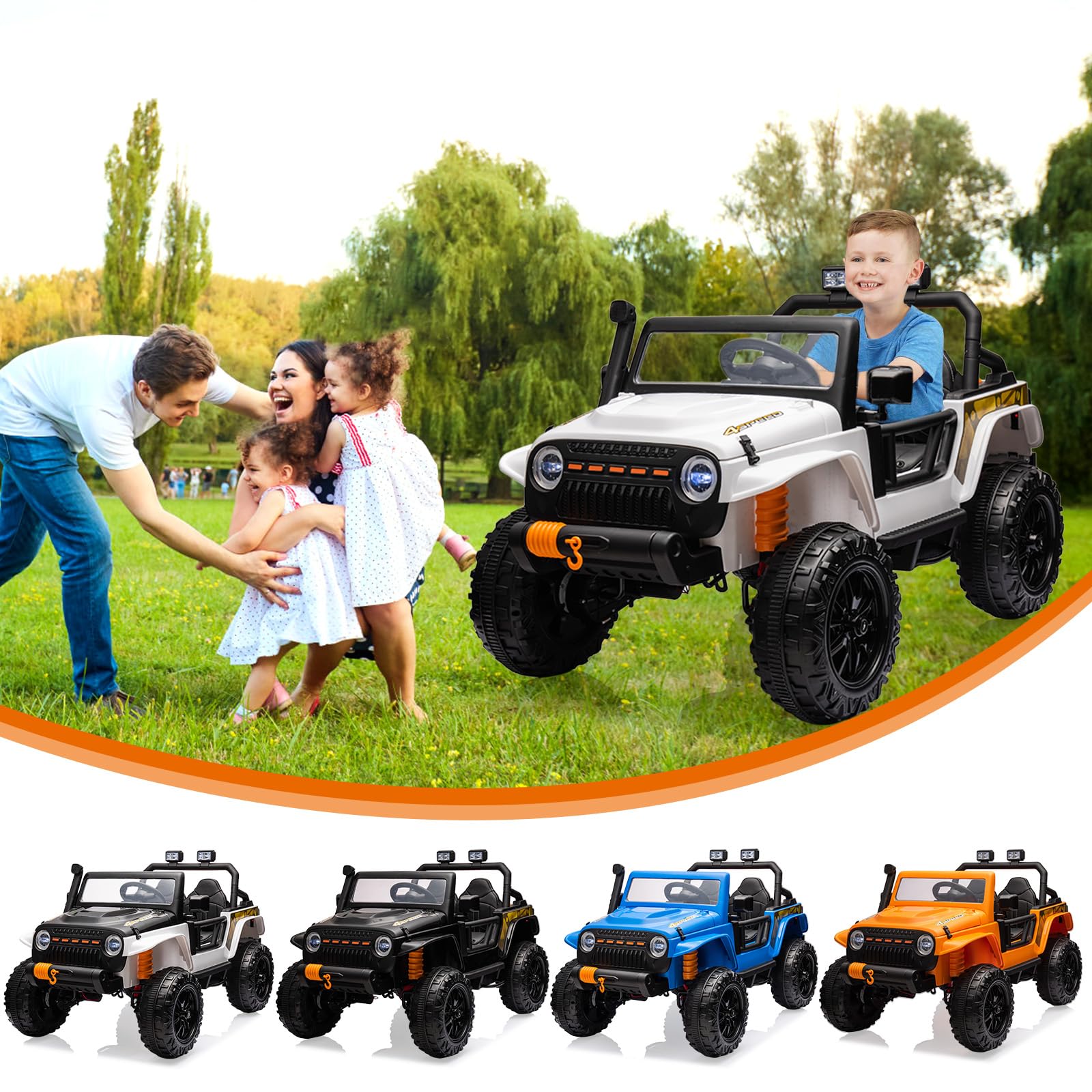 Garvee Ride - P Series: 24V 2 Seater Ride On Truck Car For Kid age 3 - 8 years, w/Remote Control, 4-Wheeler Suspension, 4x55W Powerful Engine, 4WD Battery Powered, LED Lights, Soft Braking - White