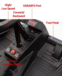 - Safety First with Parental Control: This kids' electric vehicles equipped with a 2.4G remote control for parents to intervene if necessary, plus an emergency "P" button for quick responses. Kids can also drive safely with the steering wheel and foot pedal