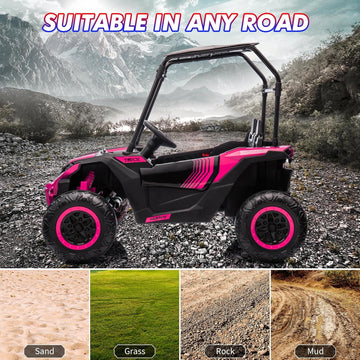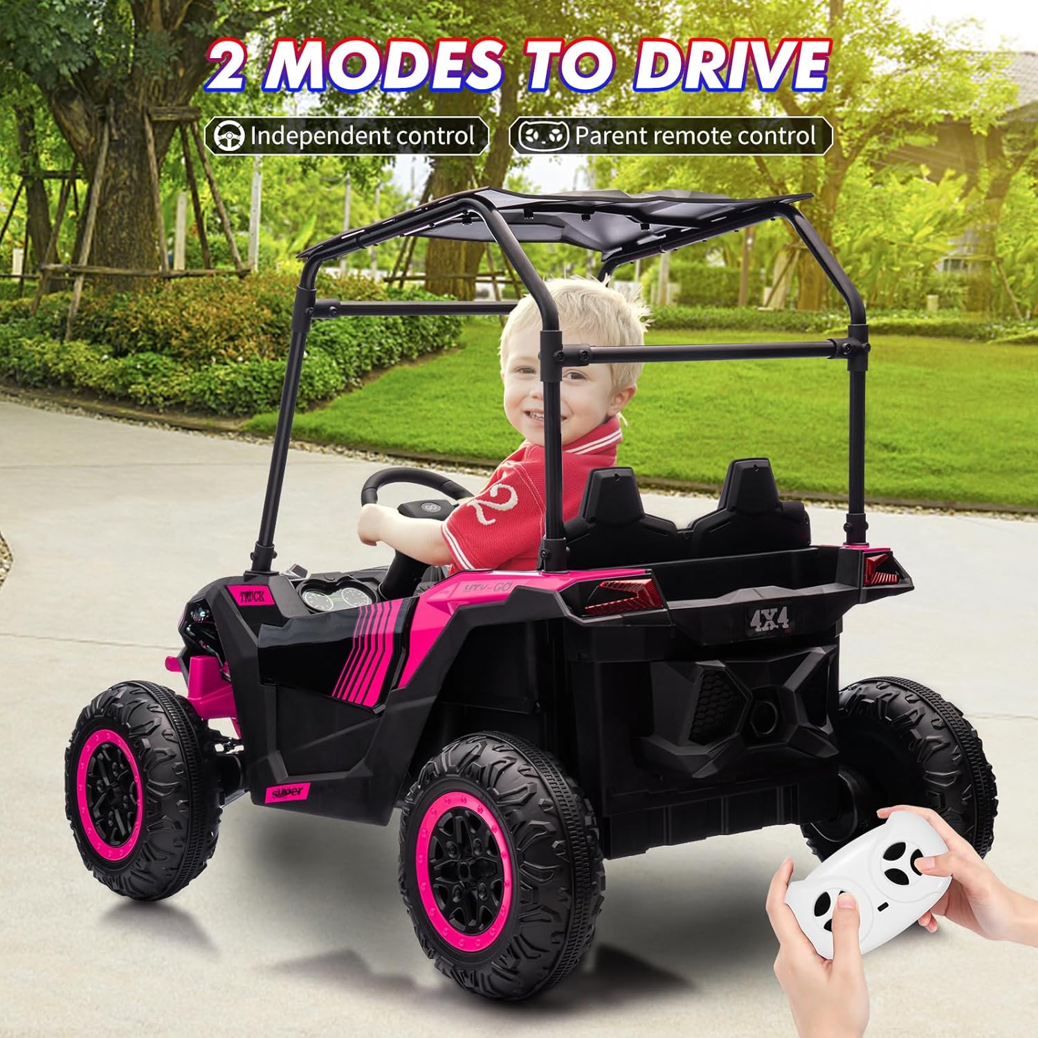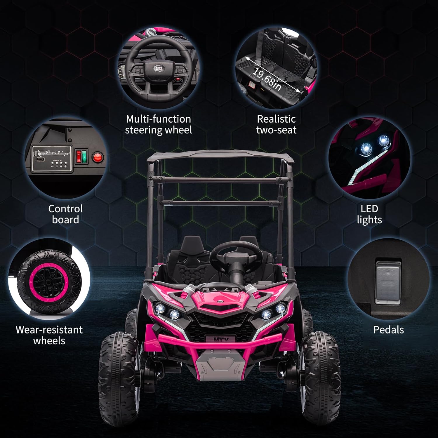 Garvee Ride - P Series: 24V Ride On Utv For Kids,2 Seater 4WD Electric Truck With Remote Control, High And Low Speed Adjustment, Led Lights, 4 Shock Absorbersm,One Click Start, Music Player(Rose)