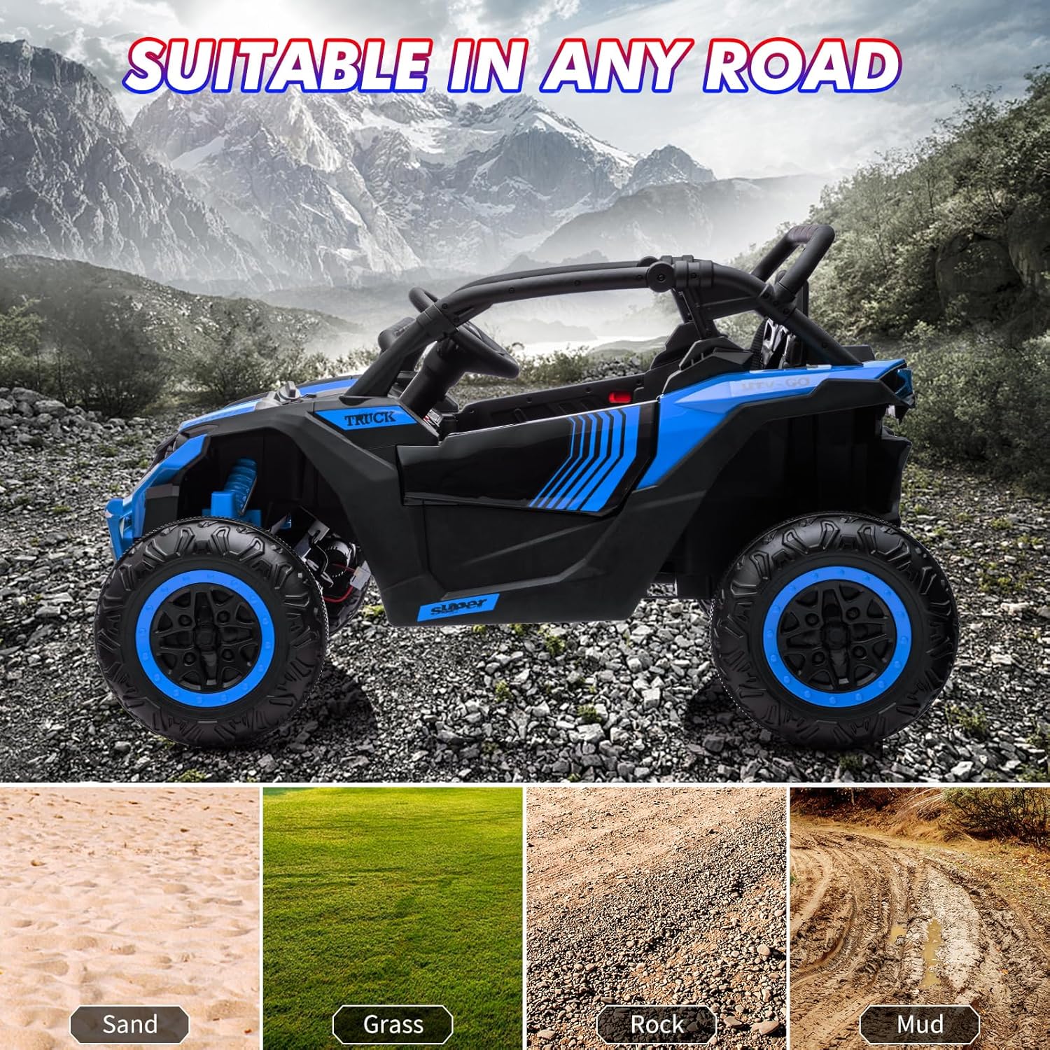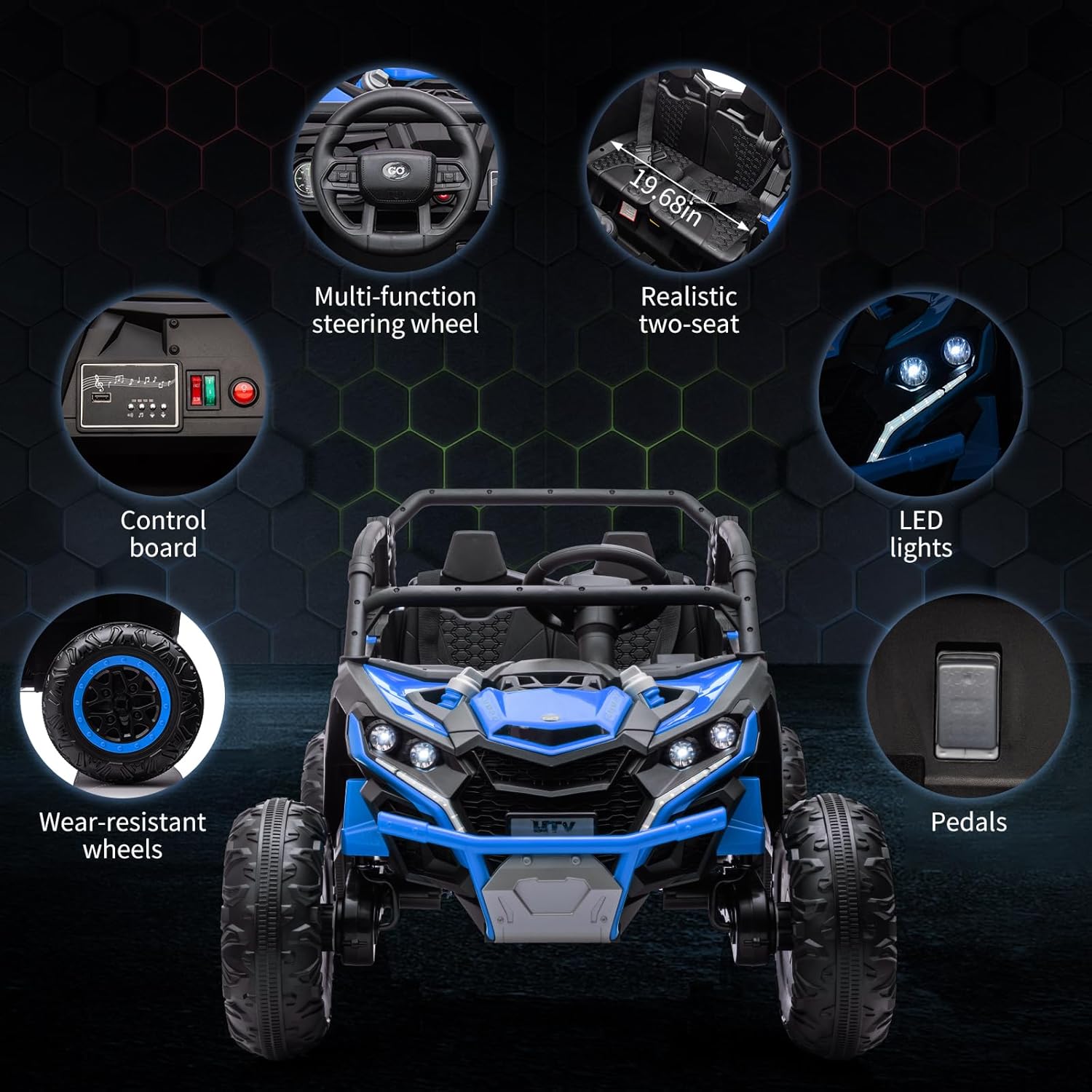 Garvee Ride - P Series: 24V Ride On Utv For Kids,2 Seater 4WD Electric Truck With Remote Control, High And Low Speed Adjustment, Led Lights, 4 Shock Absorbersm,One Click Start, Music Player(Blue)