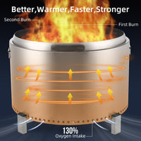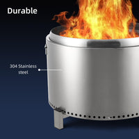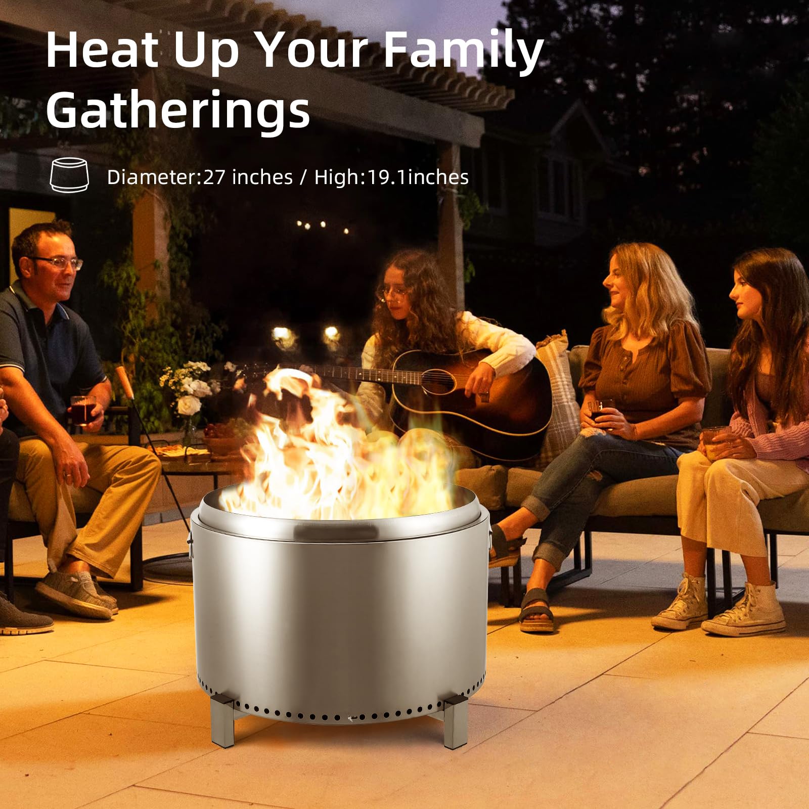 Garvee 27" Smokeless Fire Pit with Air Switch, Handle, Portable Stainless Steel, Fixed Stand, Ash Pan, for Camping & Patio